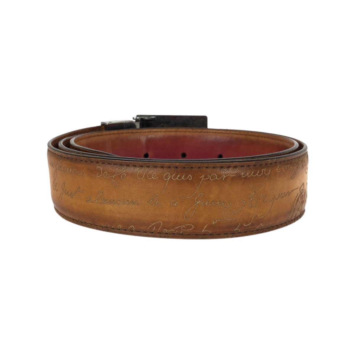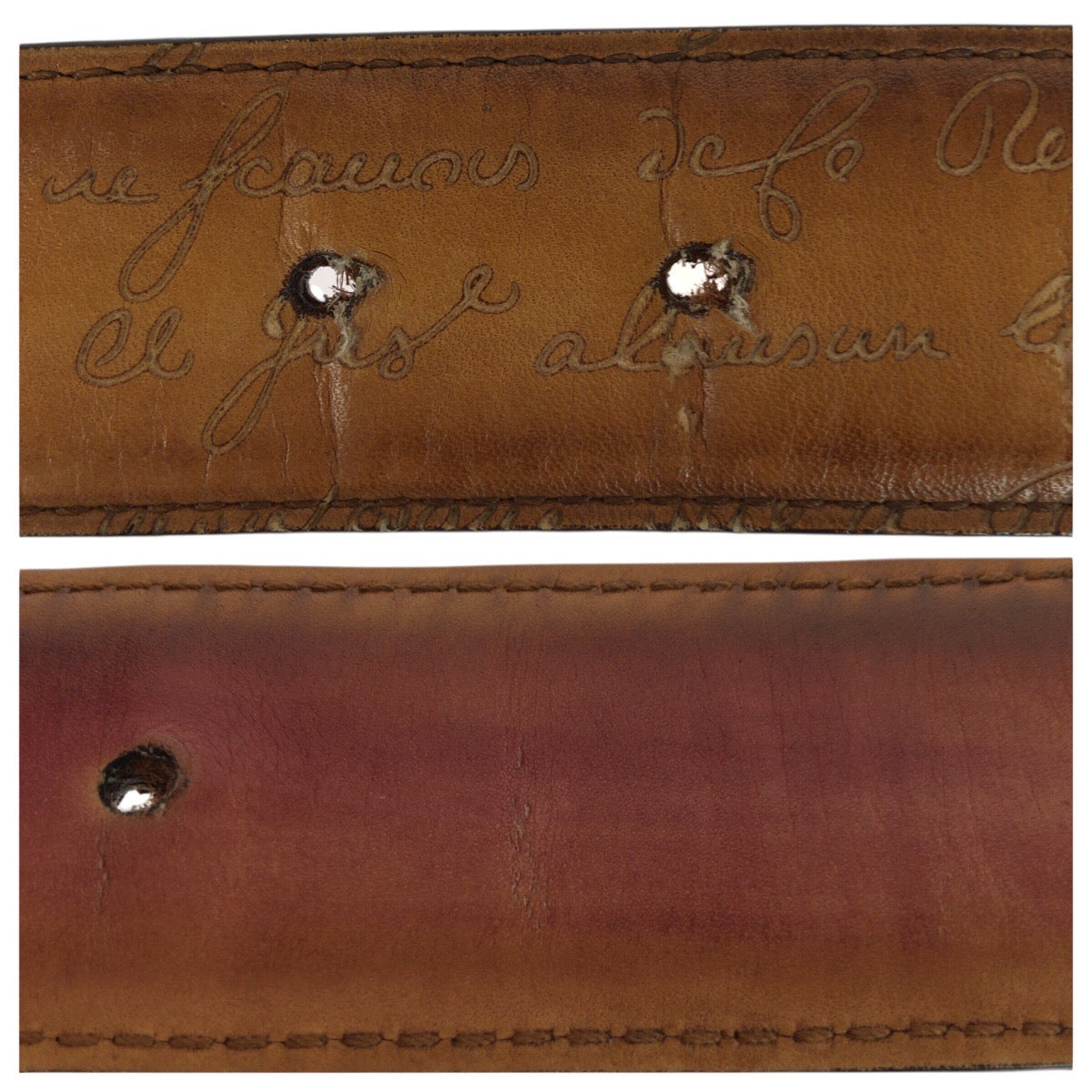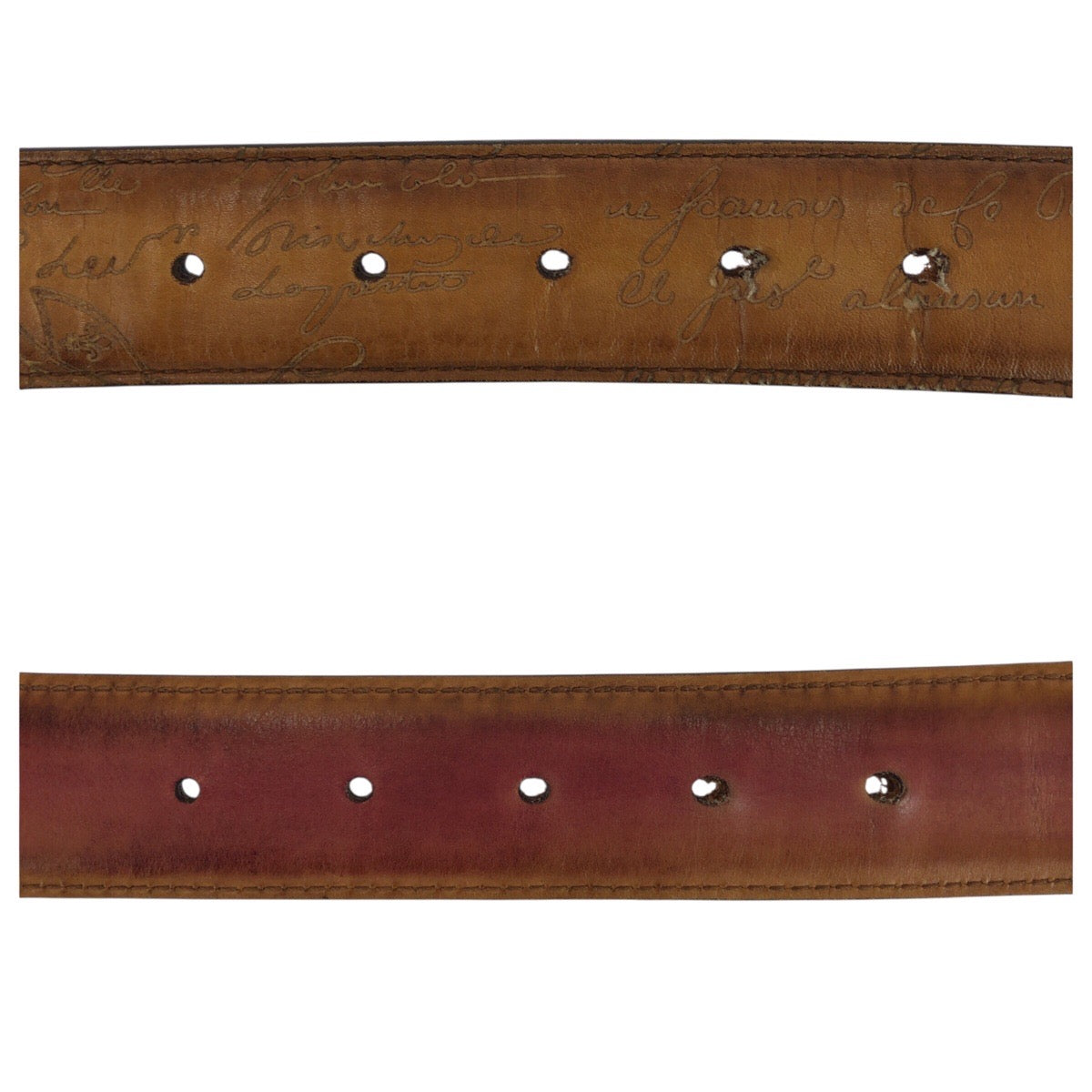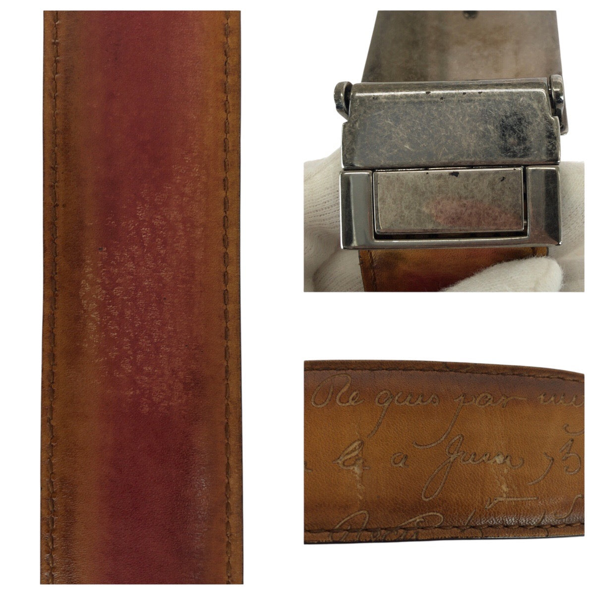 21574 Berluti ベルルッティ カリグラフィ スクリット 85cm/34インチ ブラウン シルバー金具 レザー ベルト 男女兼用 メンズ AB30