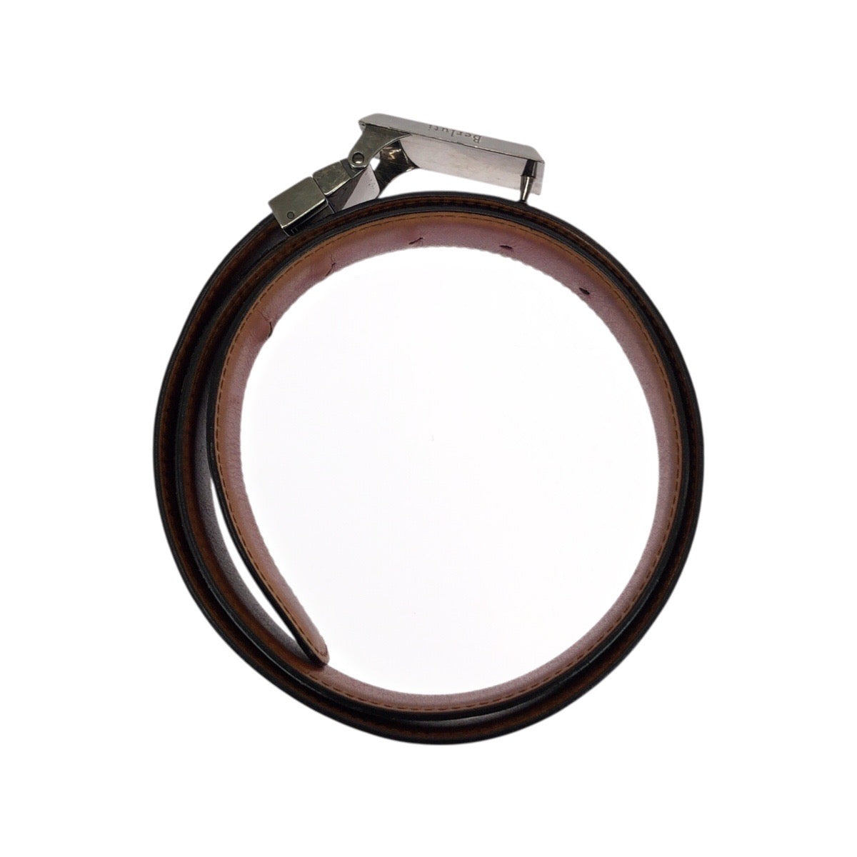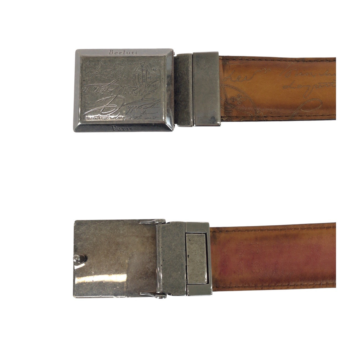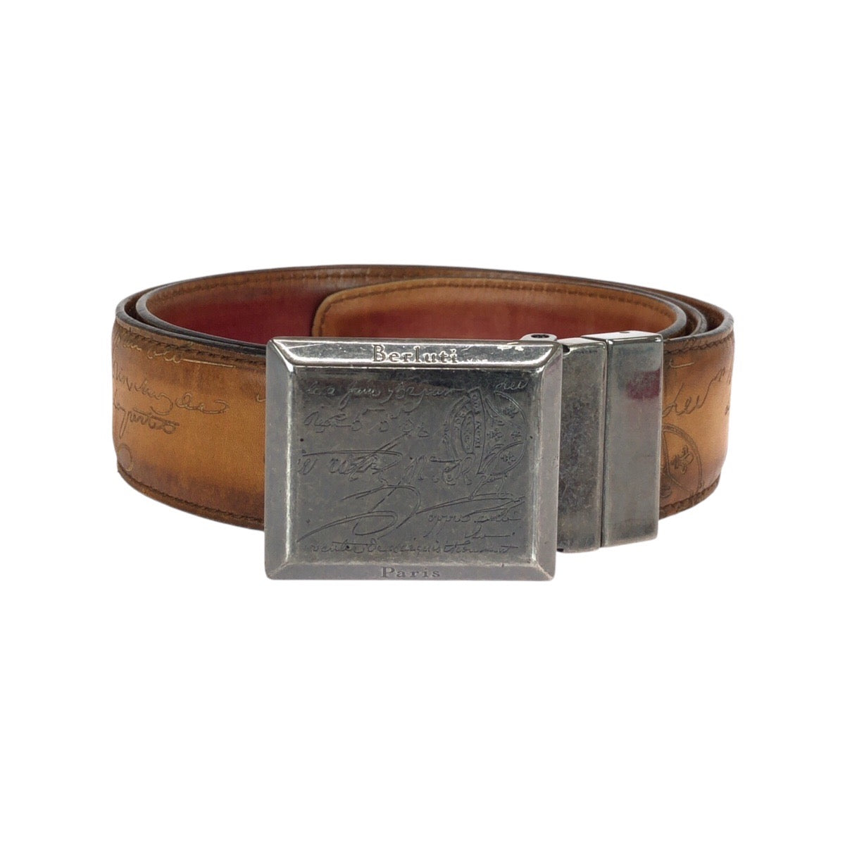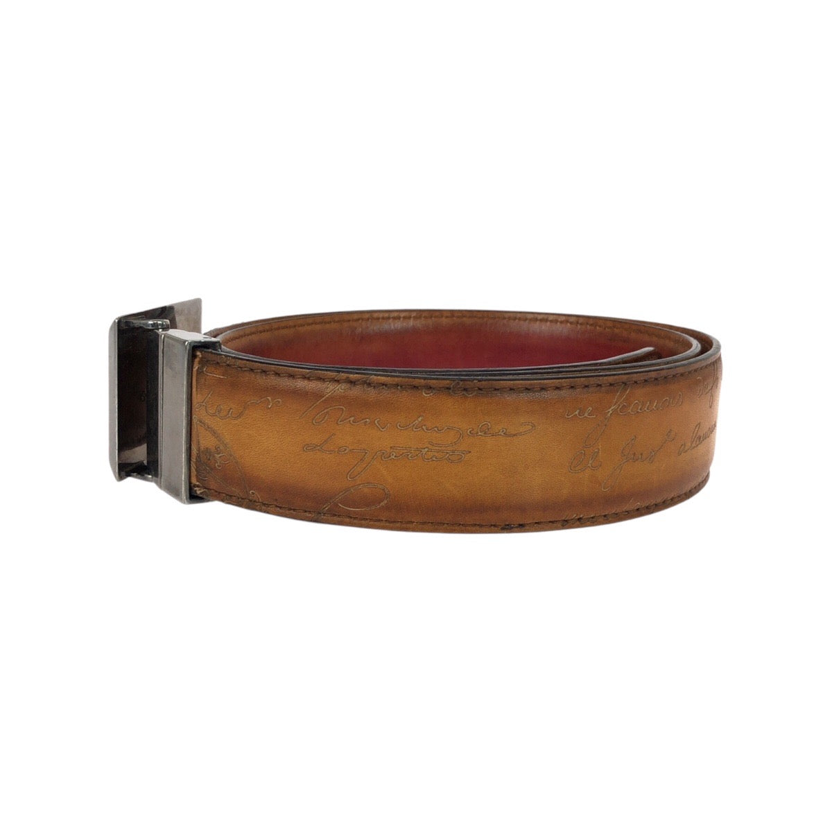 21574 Berluti ベルルッティ カリグラフィ スクリット 85cm/34インチ ブラウン シルバー金具 レザー ベルト 男女兼用 メンズ AB30