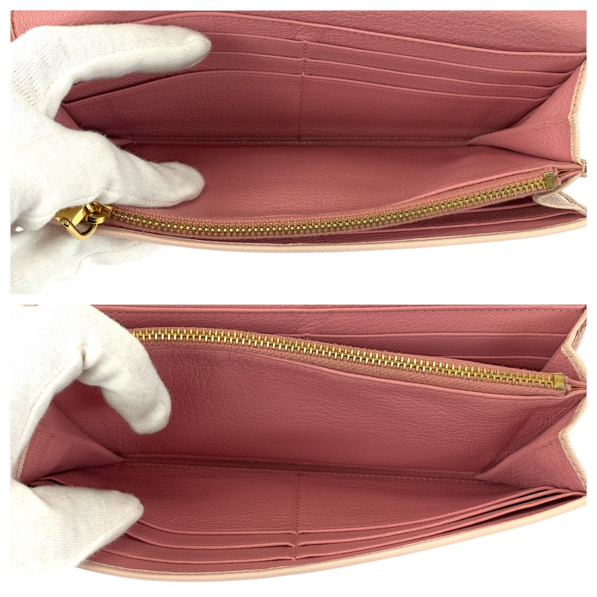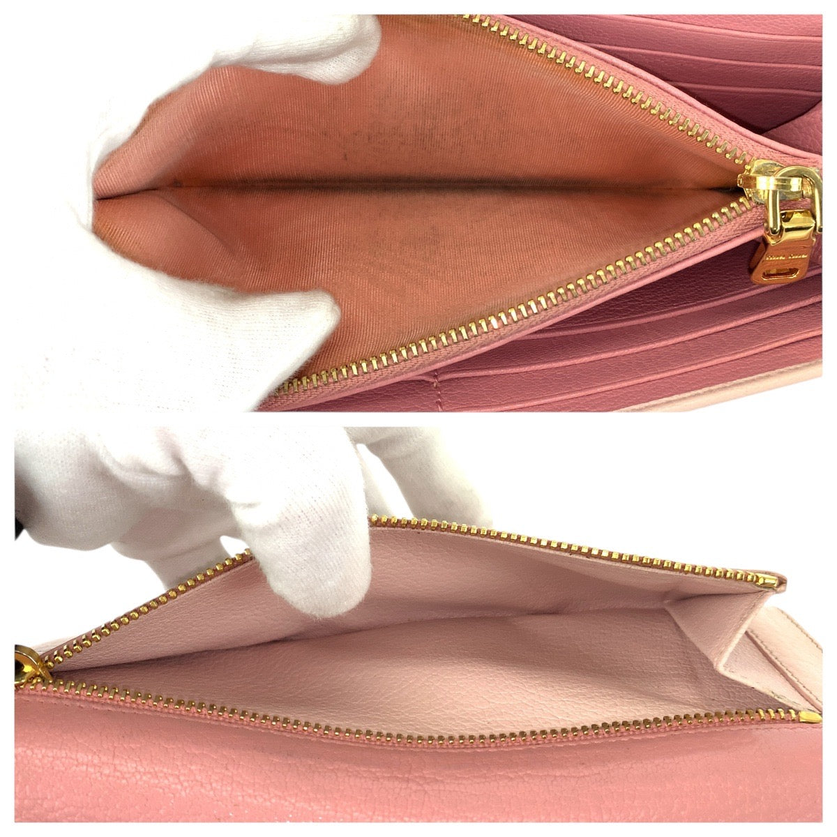 21607 MIUMIU ミュウミュウ バイカラー ピンク ゴールド金具 レザー 長財布 ロングウォレット レディース AB8