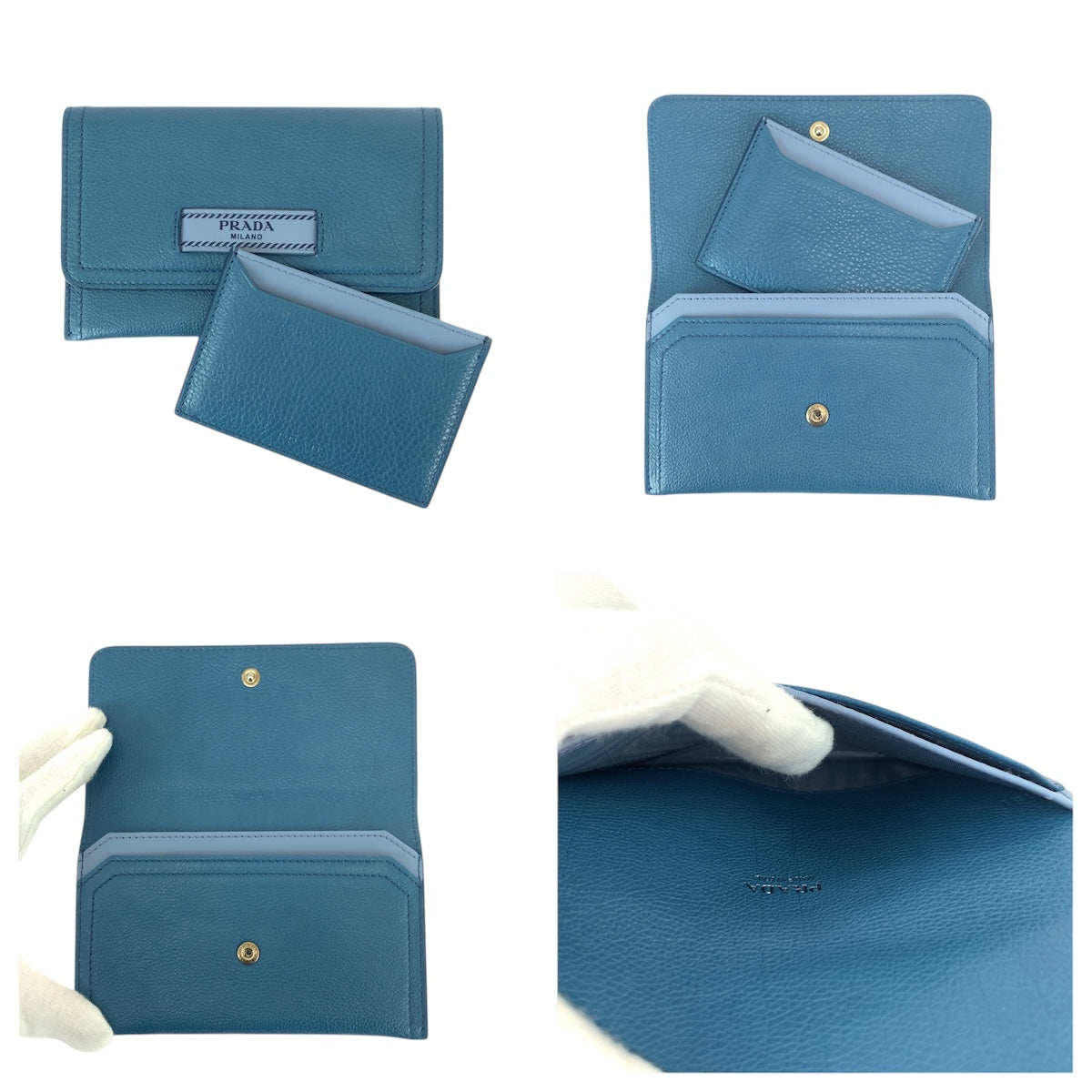 21999 PRADA プラダ ブルー ゴールド金具 レザー カードケース パスケース 名刺入れ メンズ A28