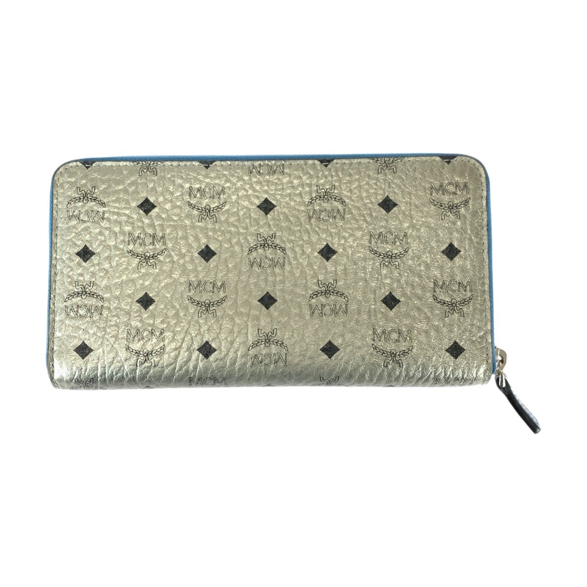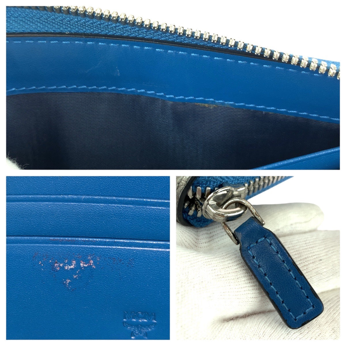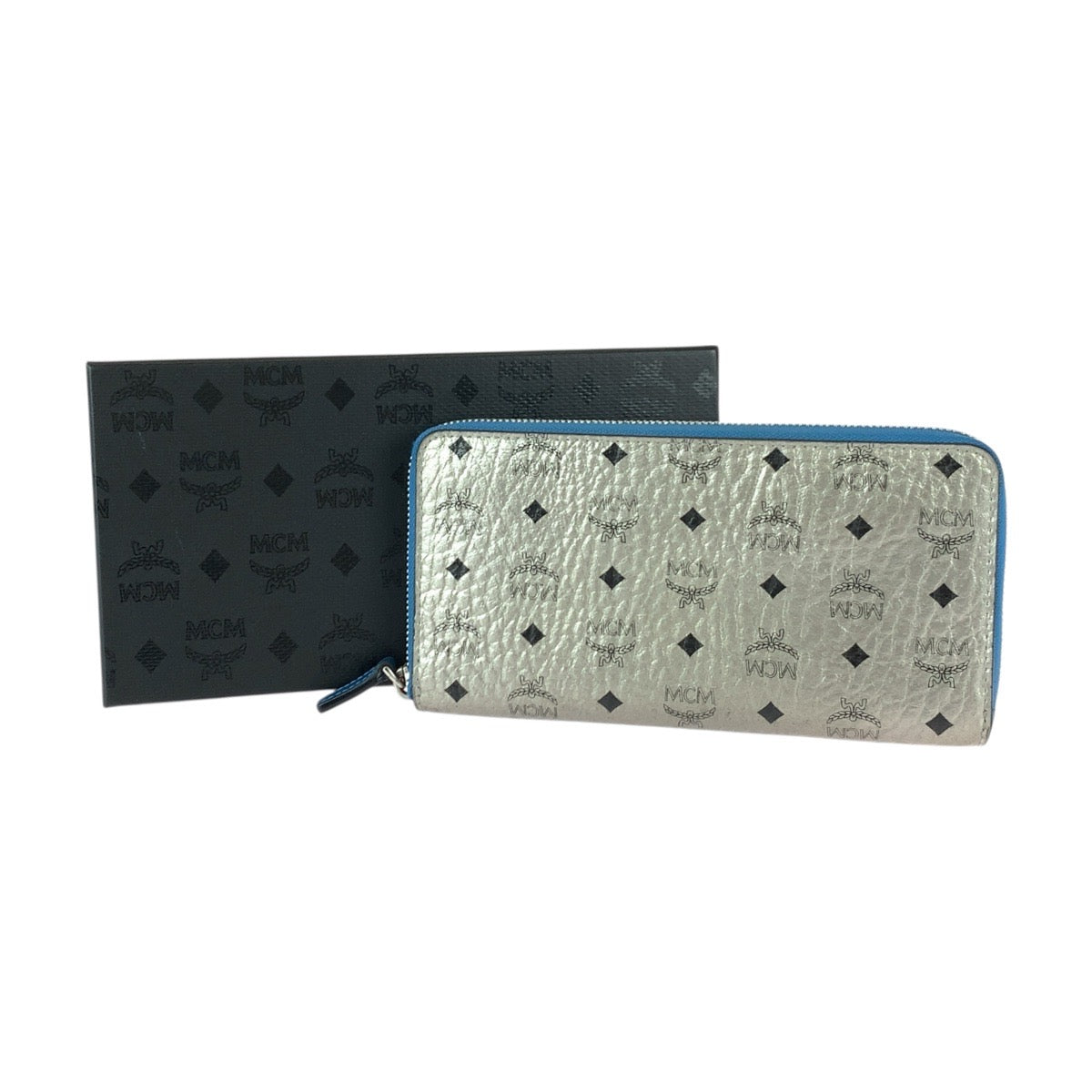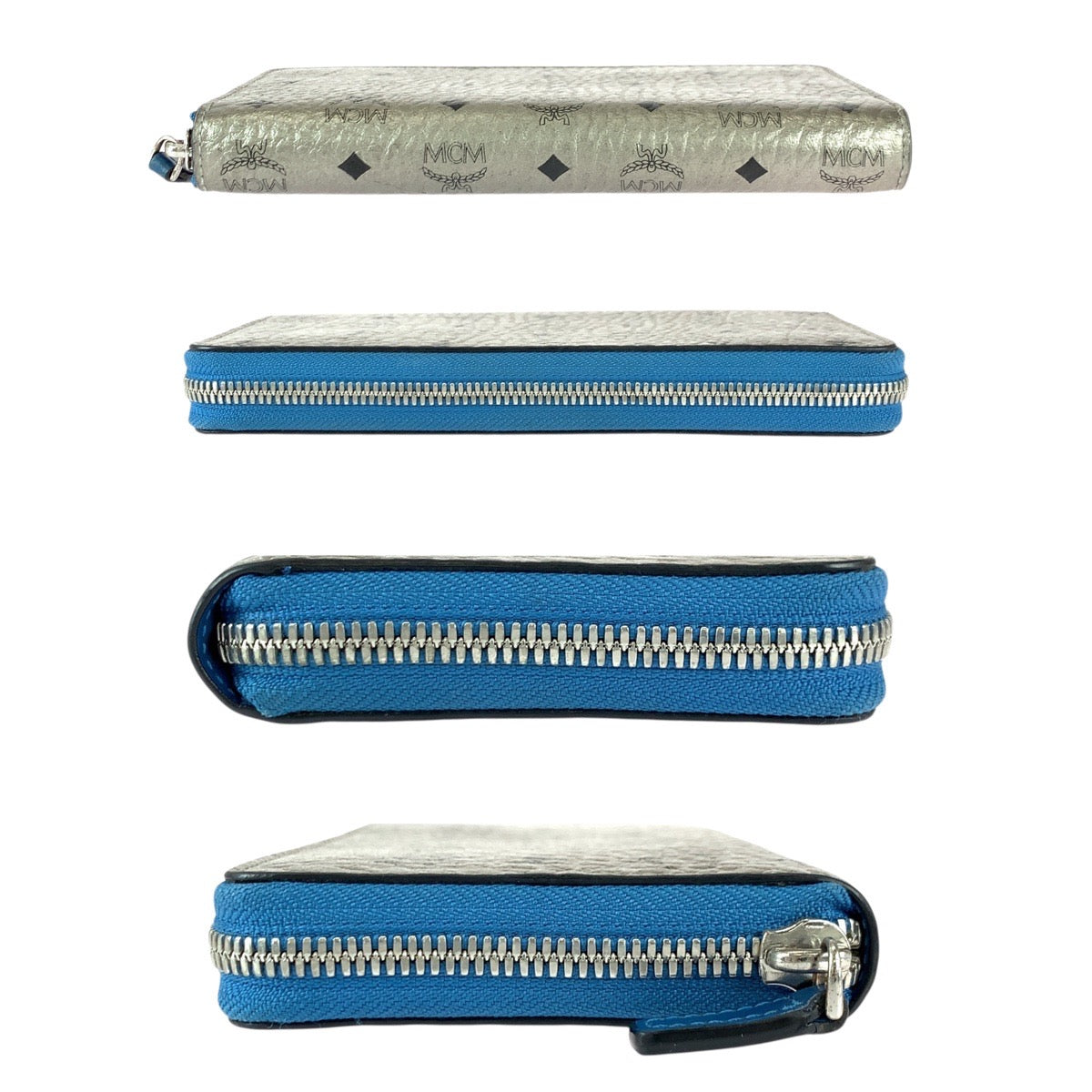 22016 MCM エム シー エム シルバー ブルー シルバー金具 レザー MYL6AVC80SV001 長財布 ラウンドファスナー レディース A18