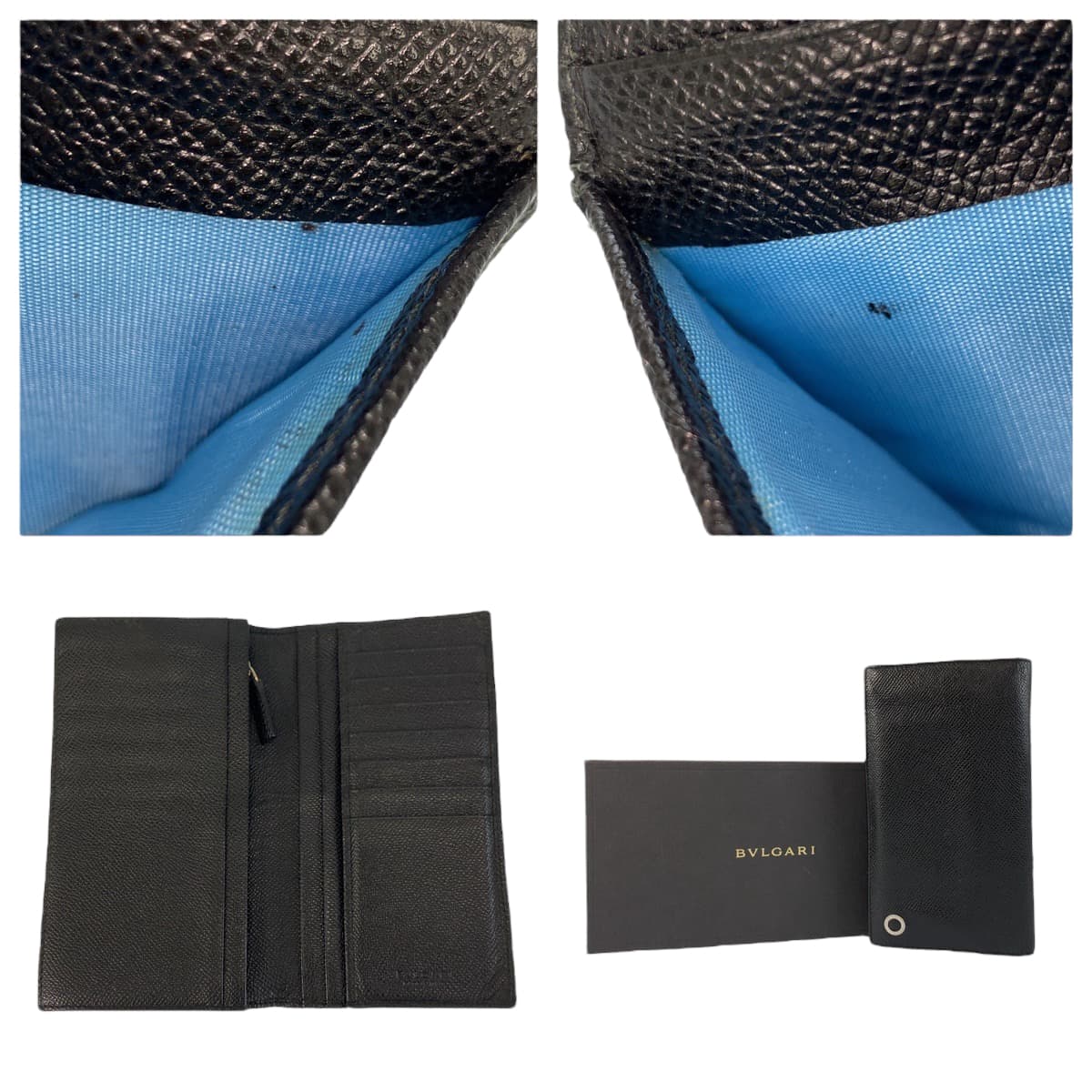 22019 BVLGARI ブルガリ ブルガリブルガリ ブラック 黒 ブルー シルバー金具 レザー 長財布 ロングウォレット メンズ AB16
