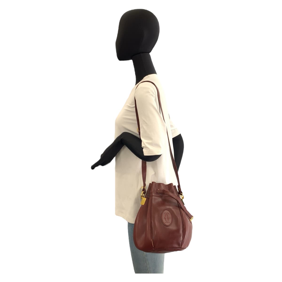 22144 CARTIER カルティエ マストライン ボルドー ゴールド金具 レザー ショルダーバッグ レディース B5