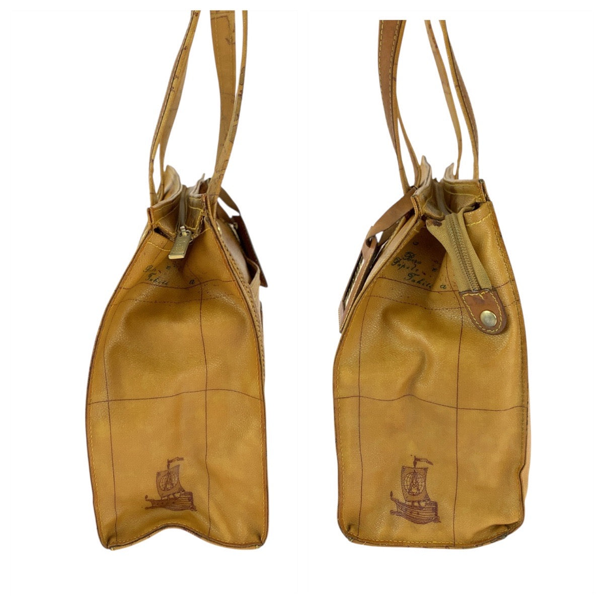 22156 PRIMA CLASSE プリマクラッセ 地図柄 ブラウン キャメル ゴールド金具 PVC / レザー トートバッグ ショルダーバッグ レディース AB7