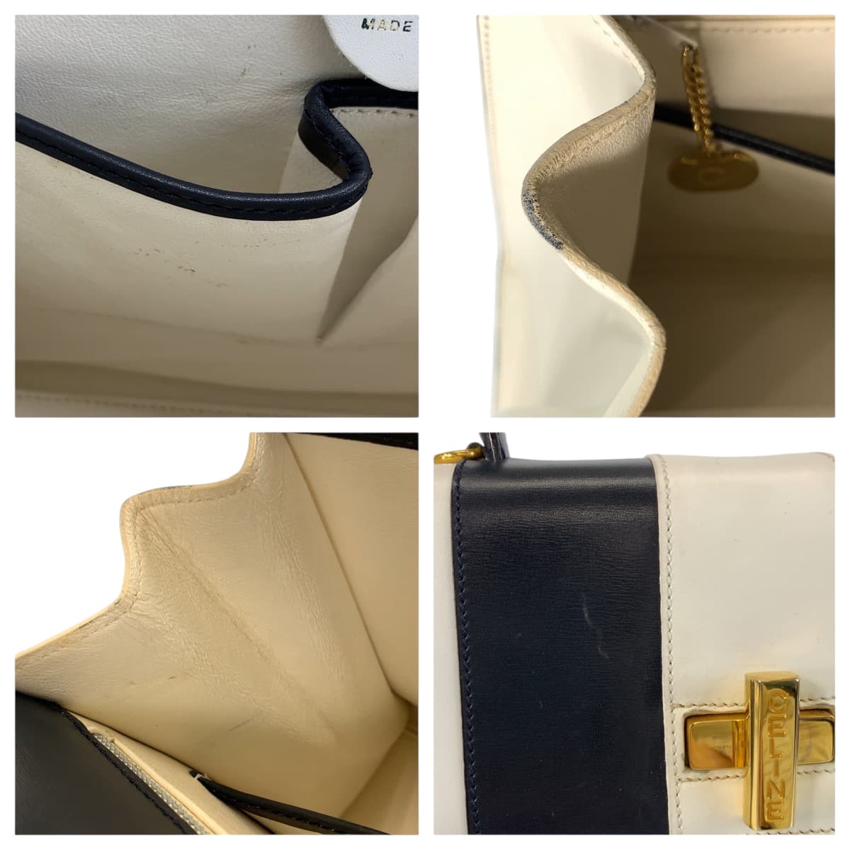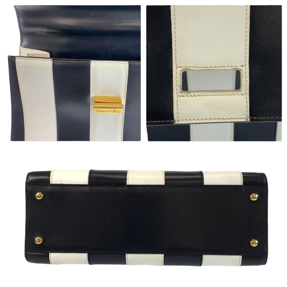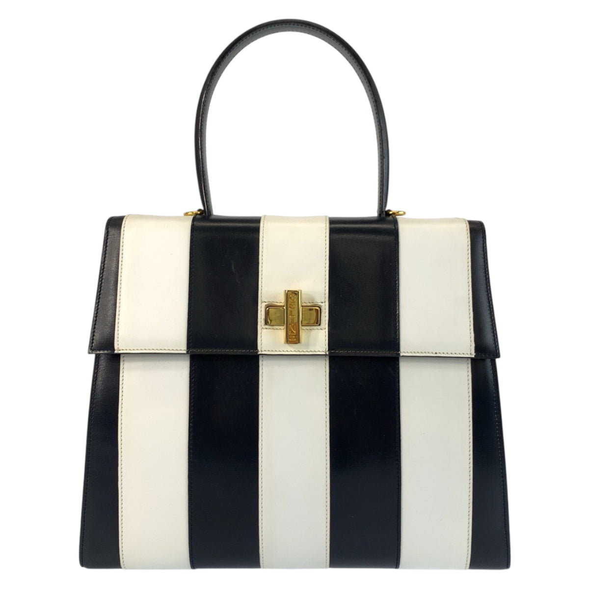 22535 CELINE セリーヌ ヴィンテージ ターンロック ストライプ ホワイト ブラック ゴールド金具 レザー F/02 ハンドバッグ レディース AB90