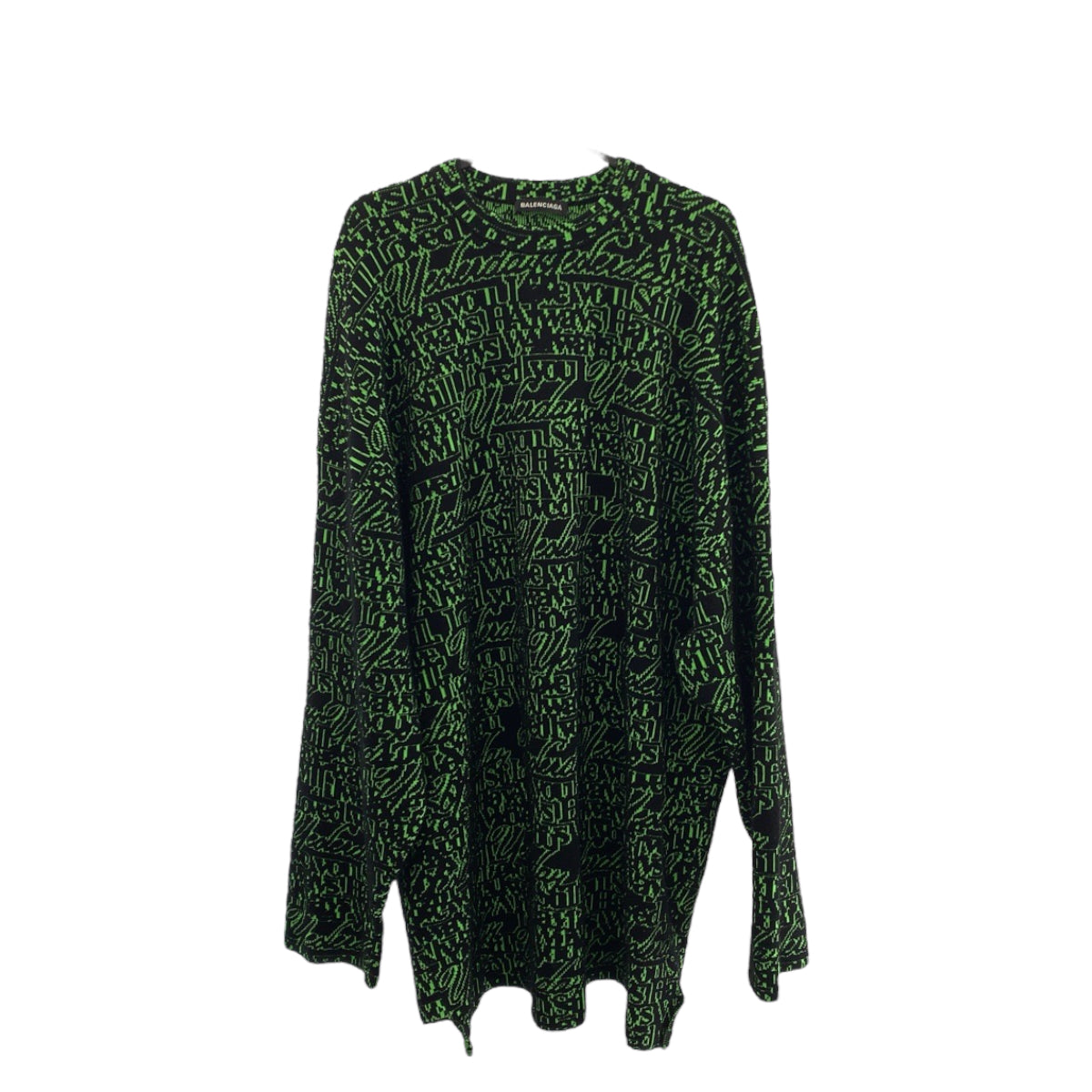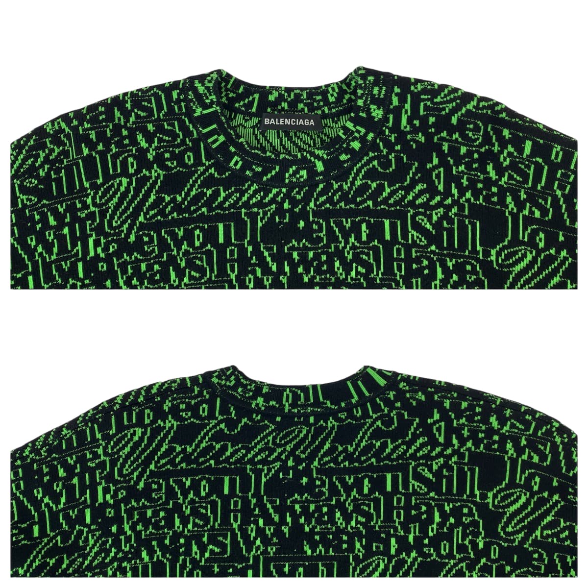 22584 BALENCIAGA バレンシアガ スローガン ジャガード オーバーサイズニット サイズXS グリーン ブラック ウール / ポリアミド 583085 T1532 セーター ニット 長袖 メンズ ABP50