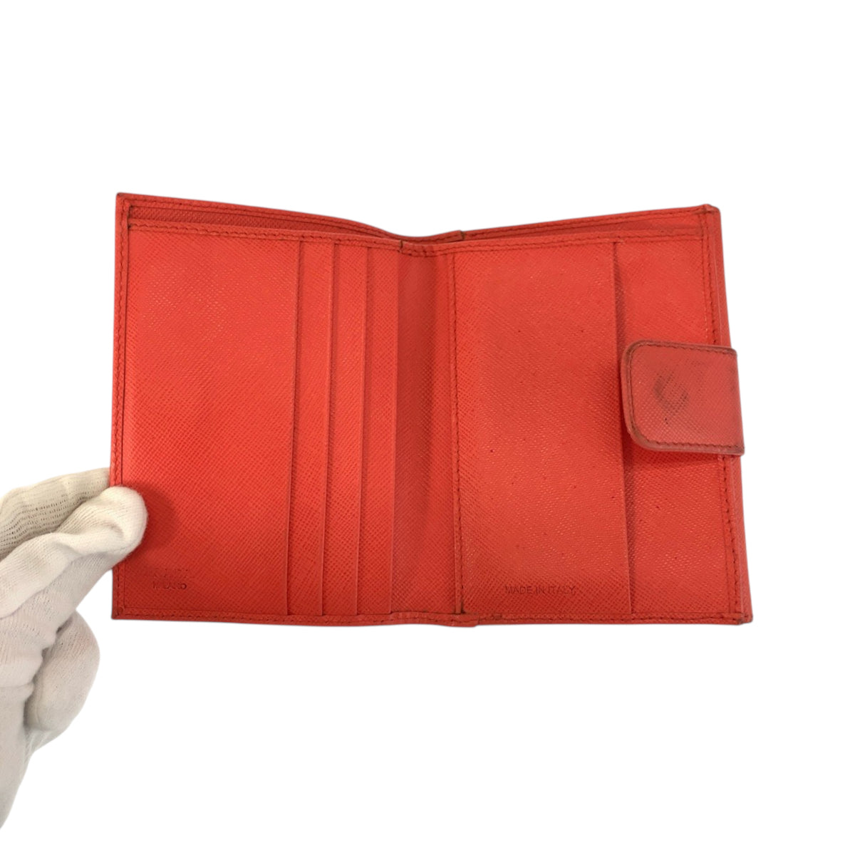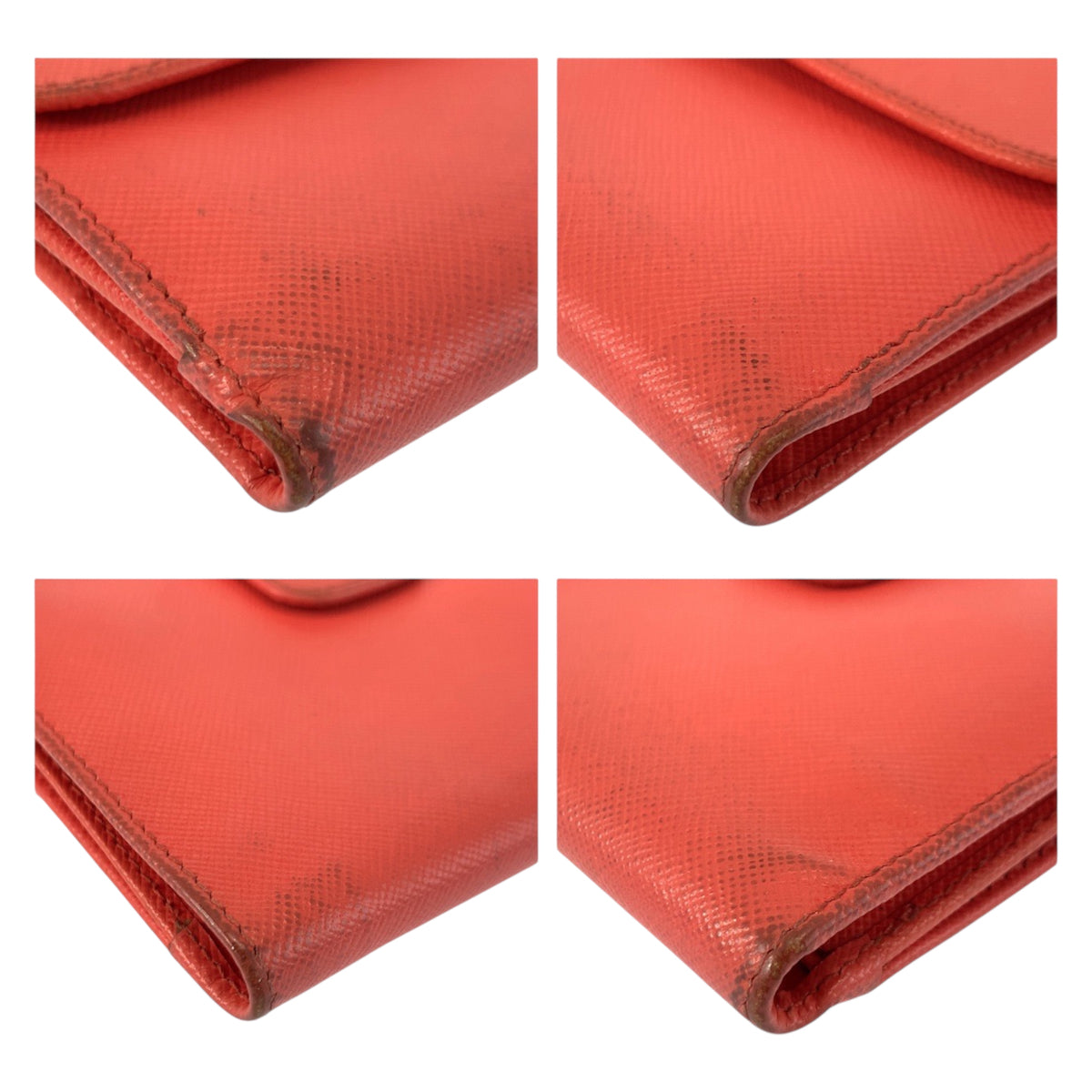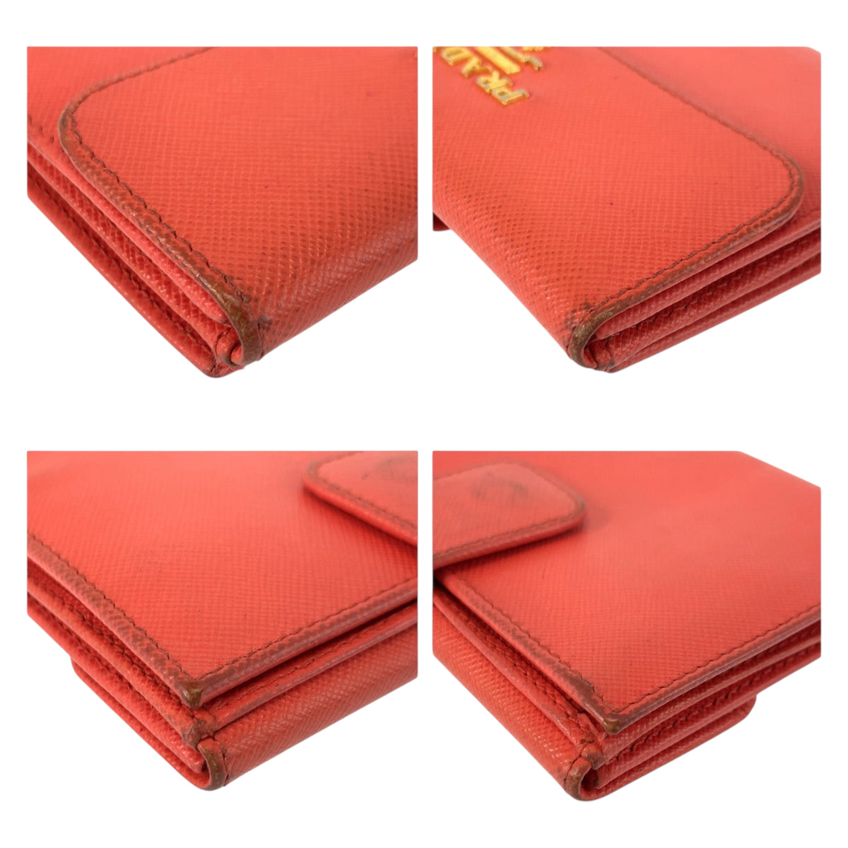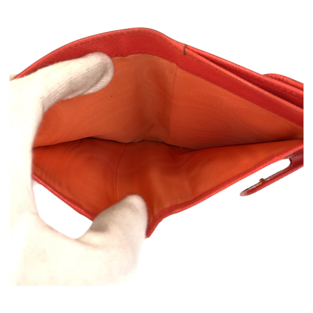23164 PRADA プラダ ロゴ オレンジ ゴールド金具 レザー 折財布 コンパクトウォレット レディース AB14