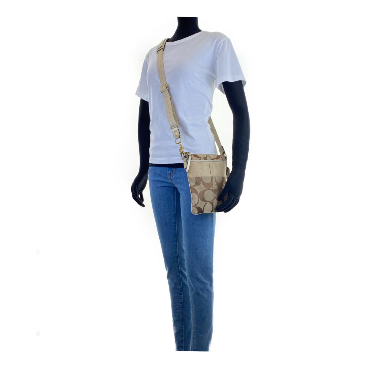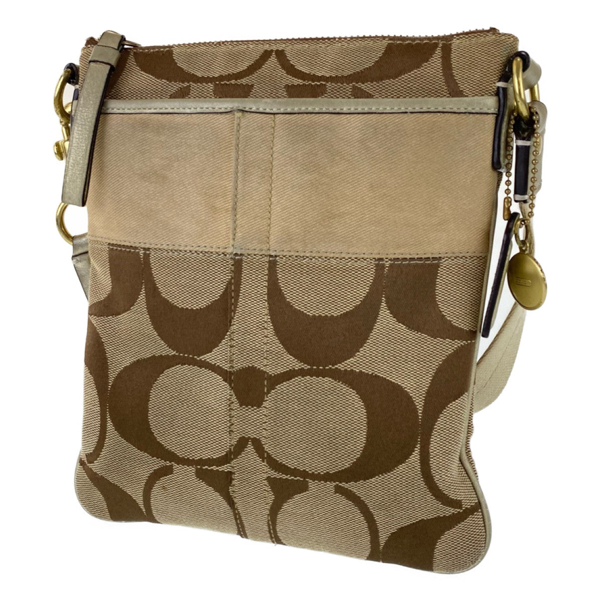 12762 COACH コーチ シグネチャー 斜め掛け可能 ブラウン キャンバス Lo867-F41207 ショルダーバッグ ポシェット レディース AB5