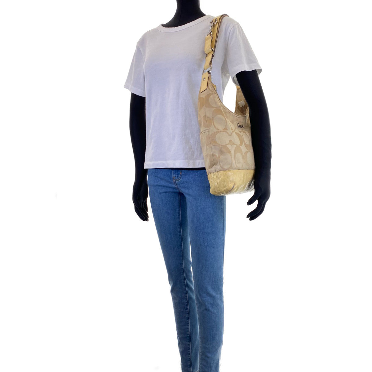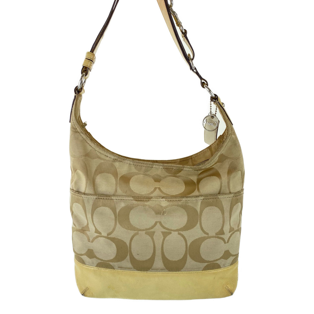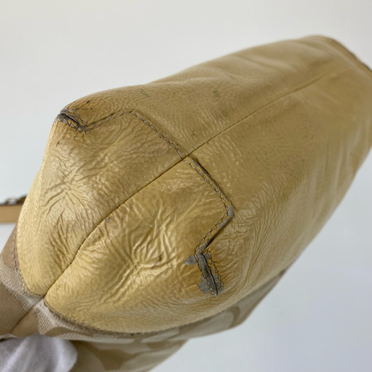 12761 COACH コーチ シグネチャー 斜め掛け調整可能 ベージュ キャンバス / パテントレザー D1171-F17490 ホーボー ショルダーバッグ レディース AB5