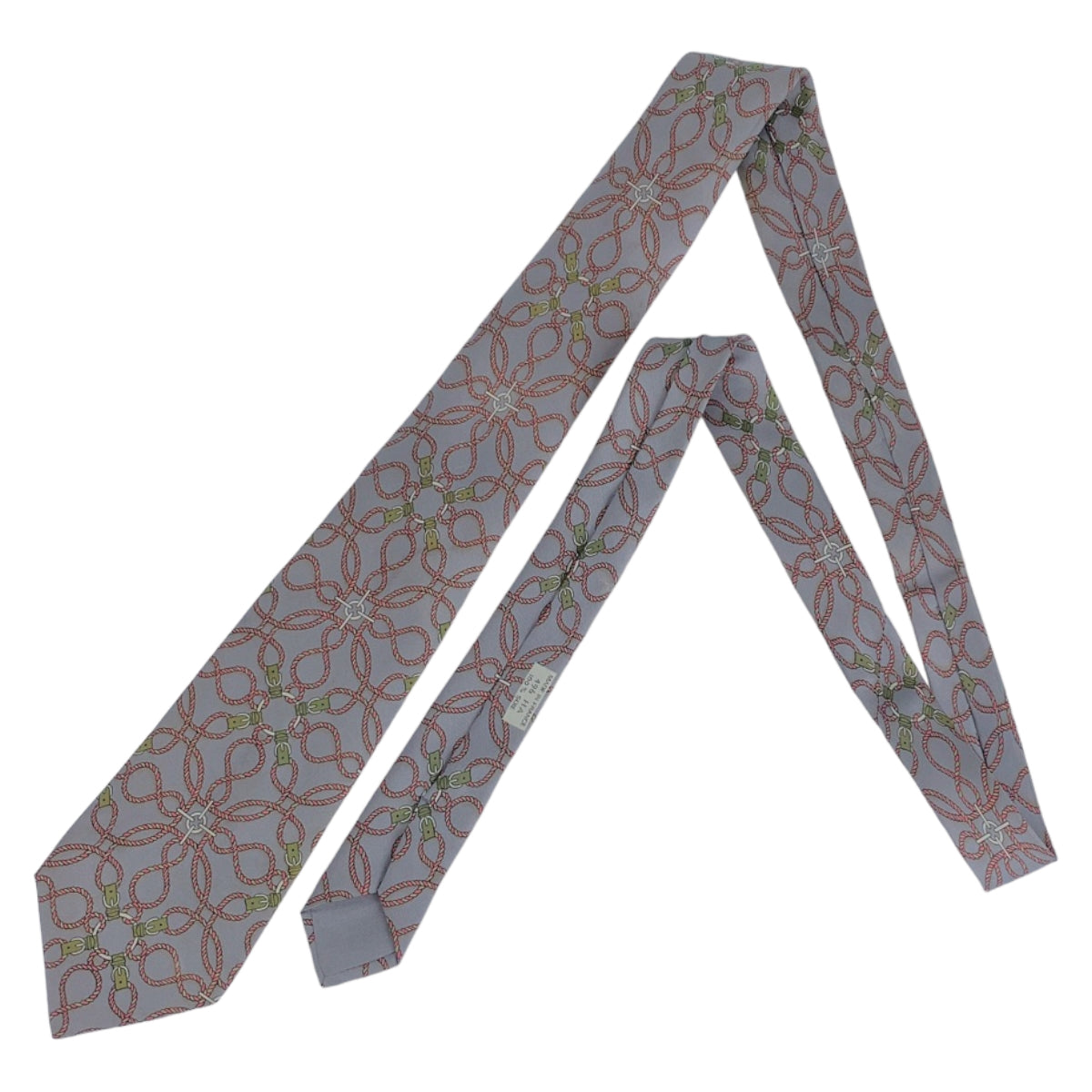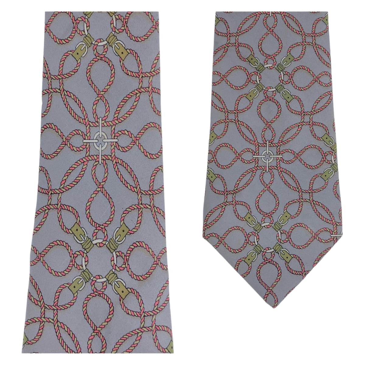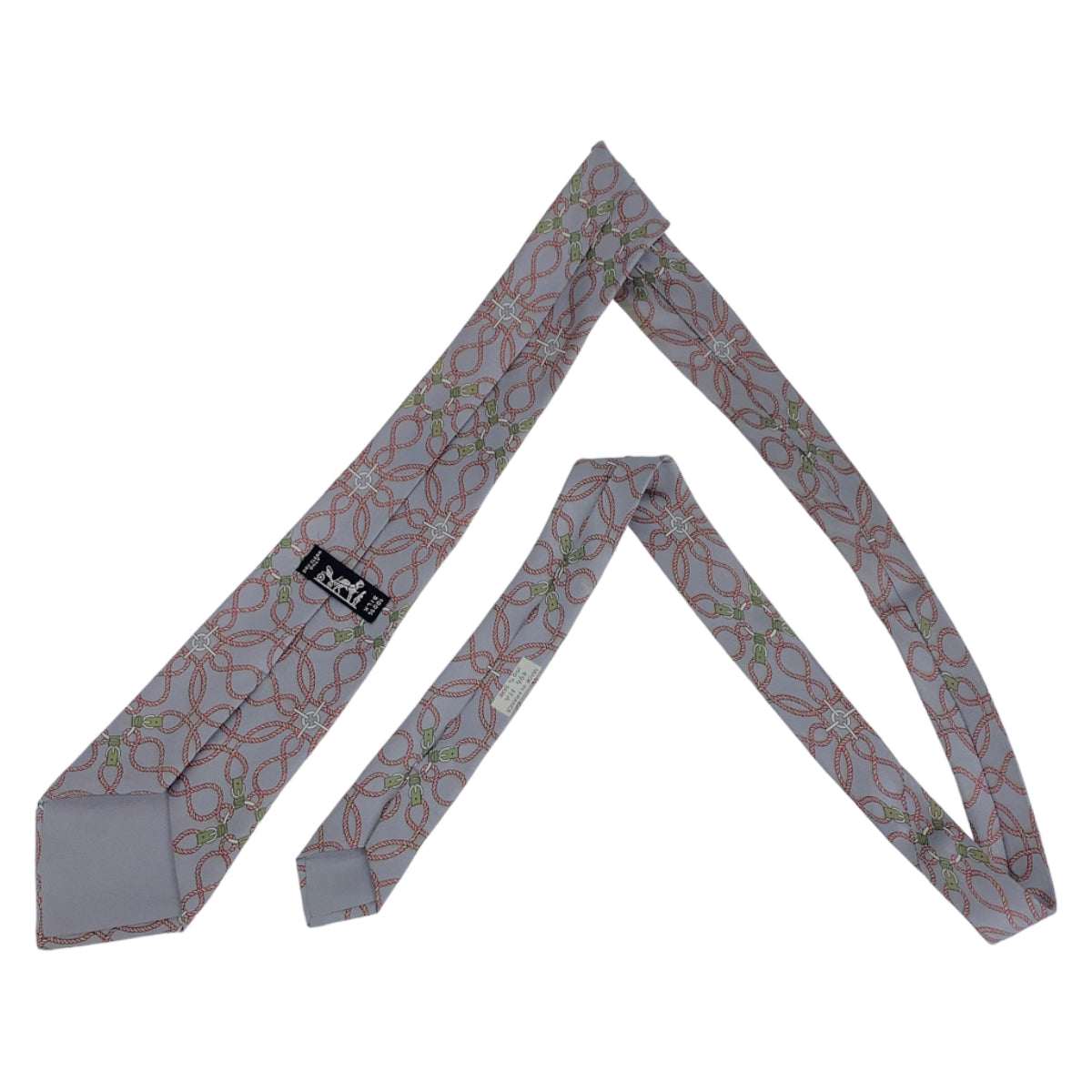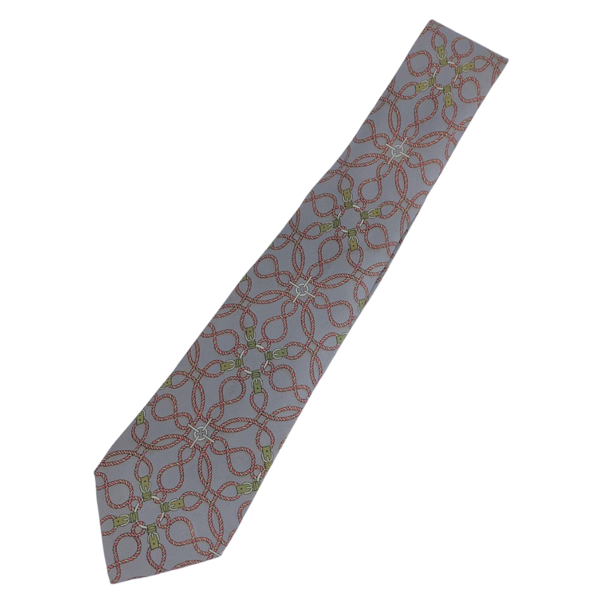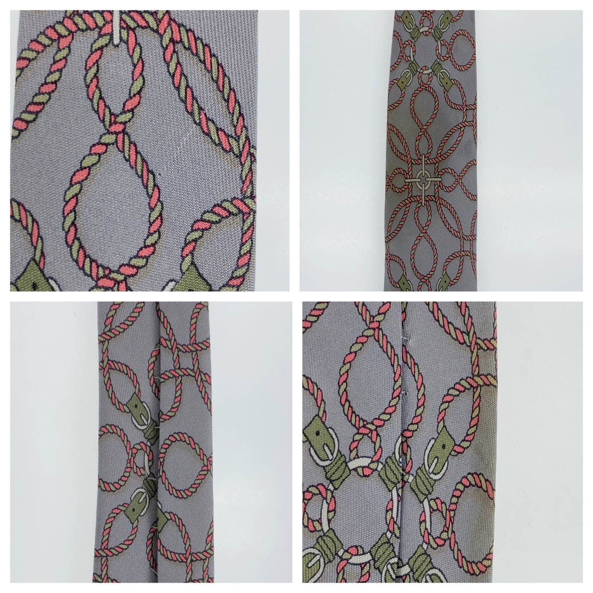 12721 HERMES エルメス 総柄 グレー ピンク マルチカラー シルク ネクタイ 剣先9cm メンズ AB5