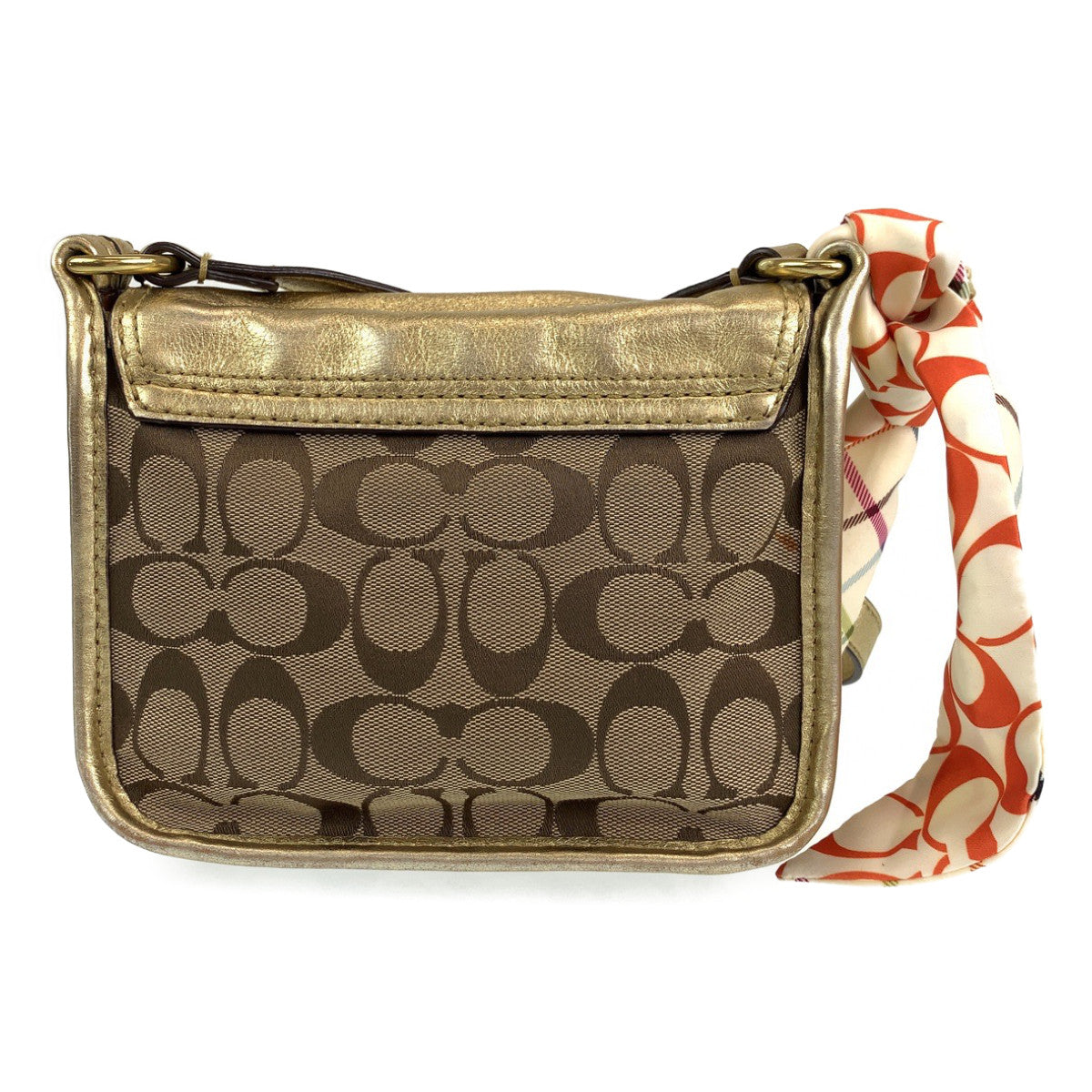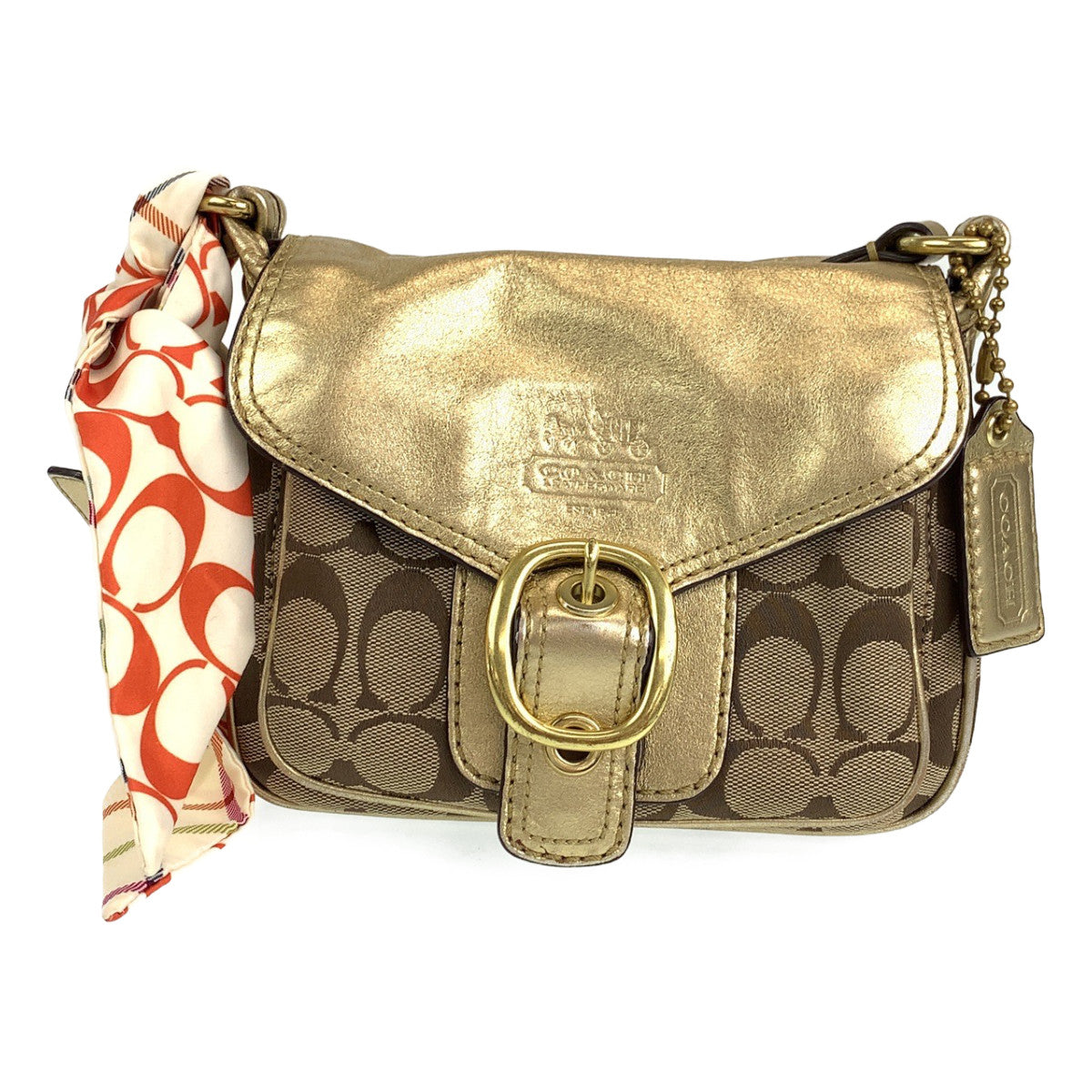 12712 COACH コーチ シグネチャー スカーフ付き ゴールド ベージュ キャンバス / レザー ショルダーバッグ ポシェット レディース ABP5