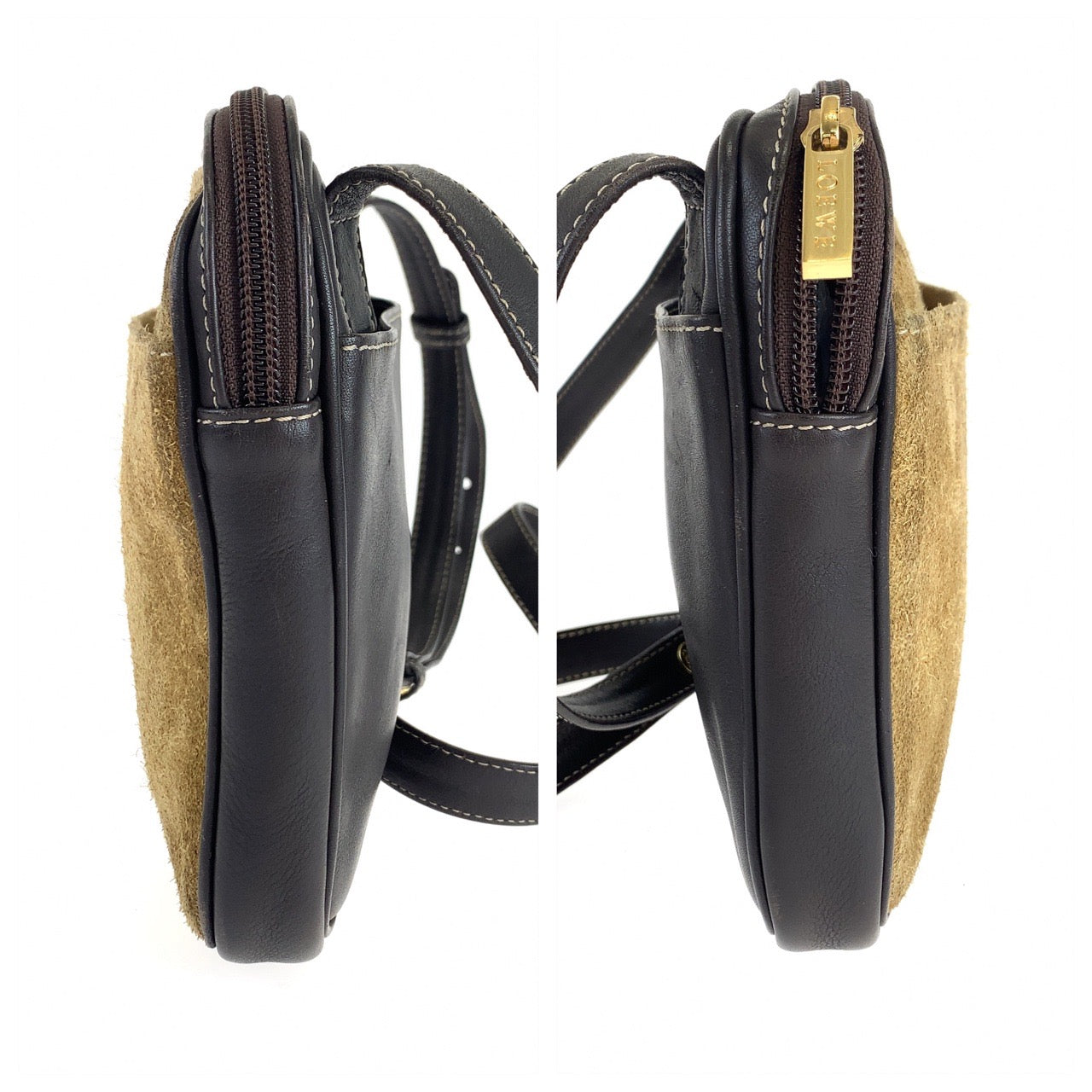 10060 LOEWE ロエベ ヴィンテージ アナグラム ブラウン スウェード / レザー 斜め掛け ショルダーバッグ ポシェット カメラバッグ レディース