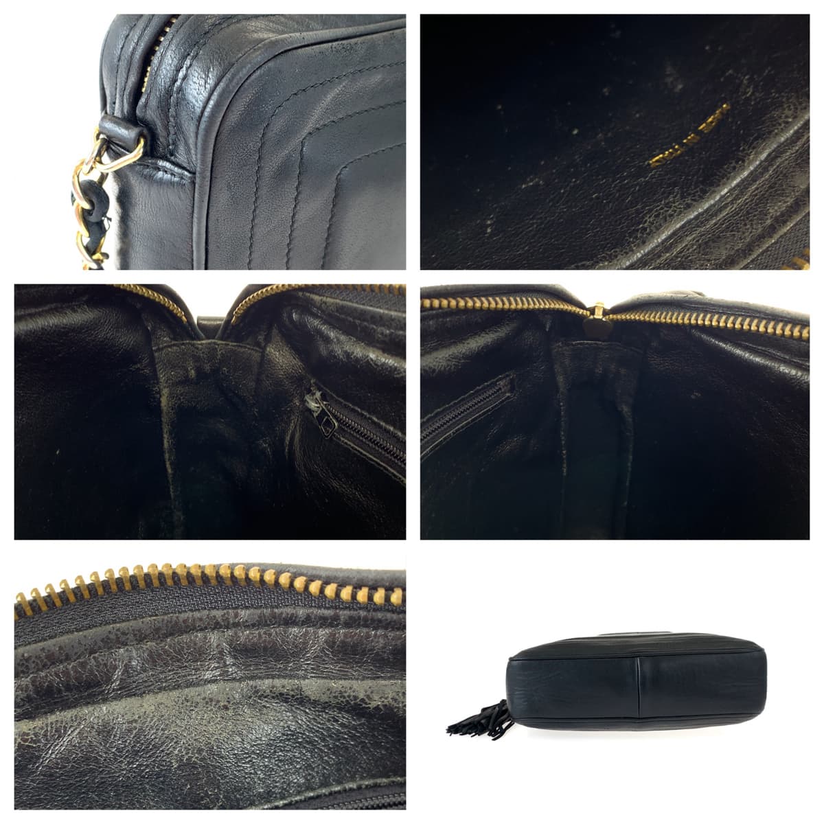 10064 CHANEL シャネル ココマーク フリンジ ブラック 黒 ゴールド金具 ラムスキン チェーンショルダバッグ 斜め掛け レディース