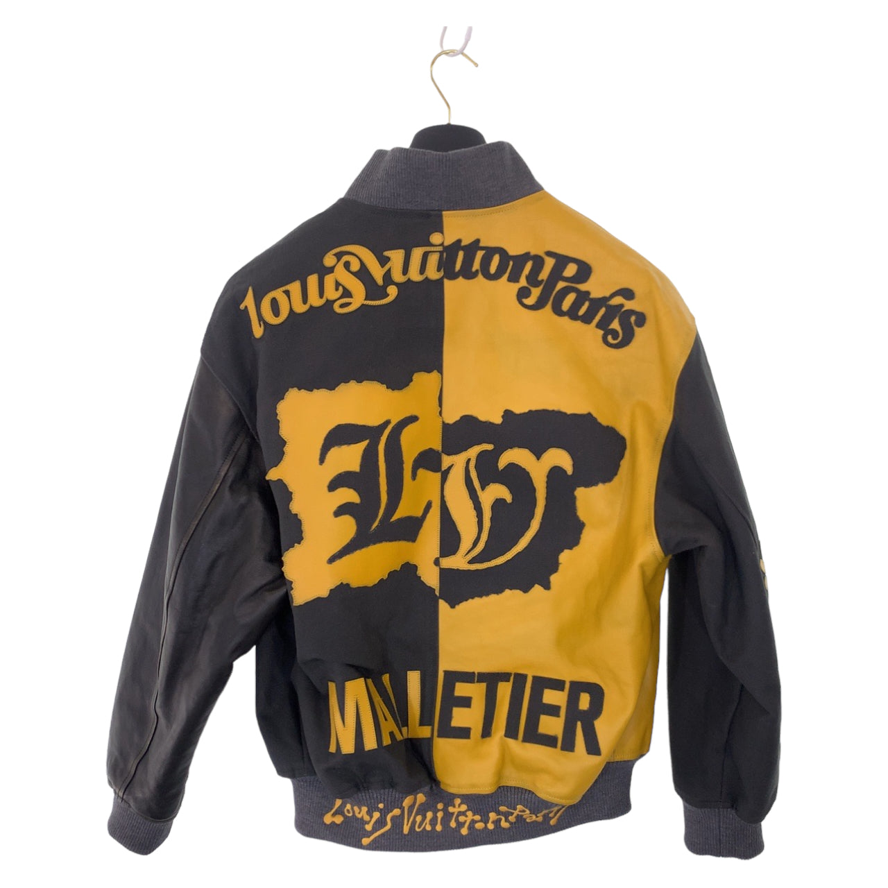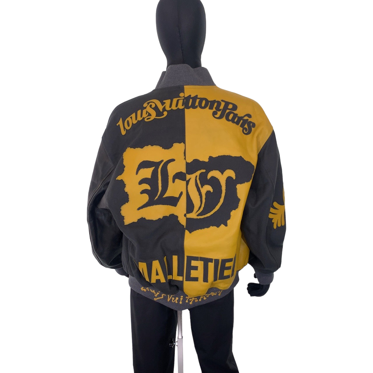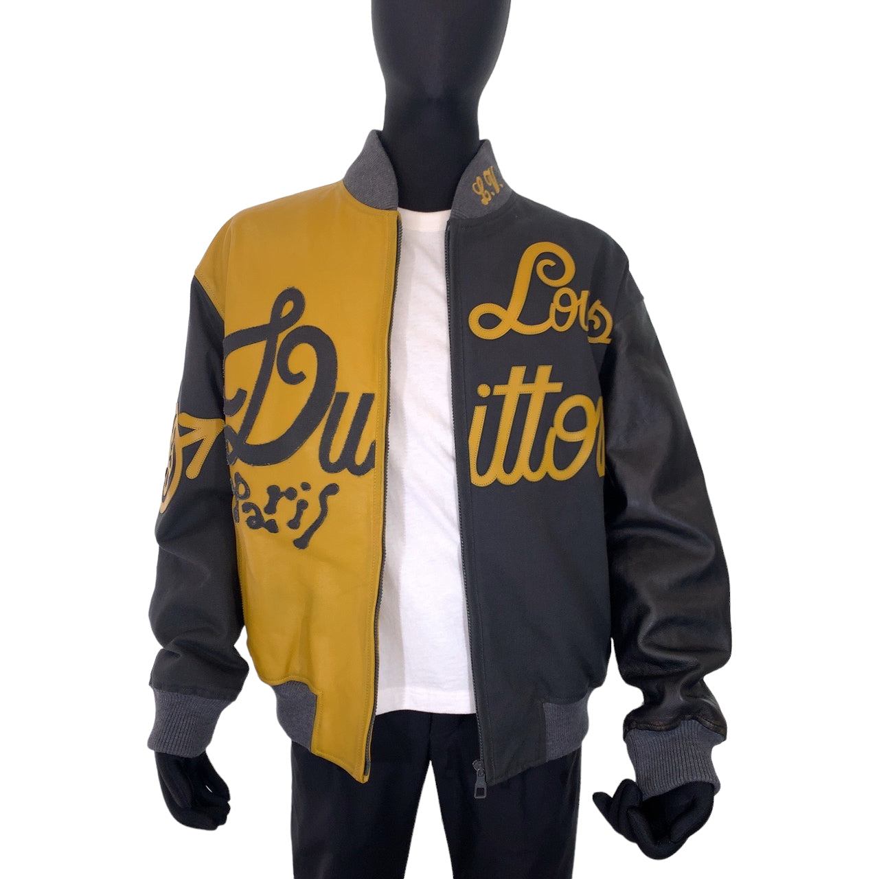10082 LOUIS VUITTON ルイヴィトン ミックスキャンバスレザーボンバー バイカラージップアップジャケット サイズ48 イエロー グレー レザー / キャンバス RM231 XS0 HOL76E スタジャン レザージャケット ライダースジャケット メンズ A500