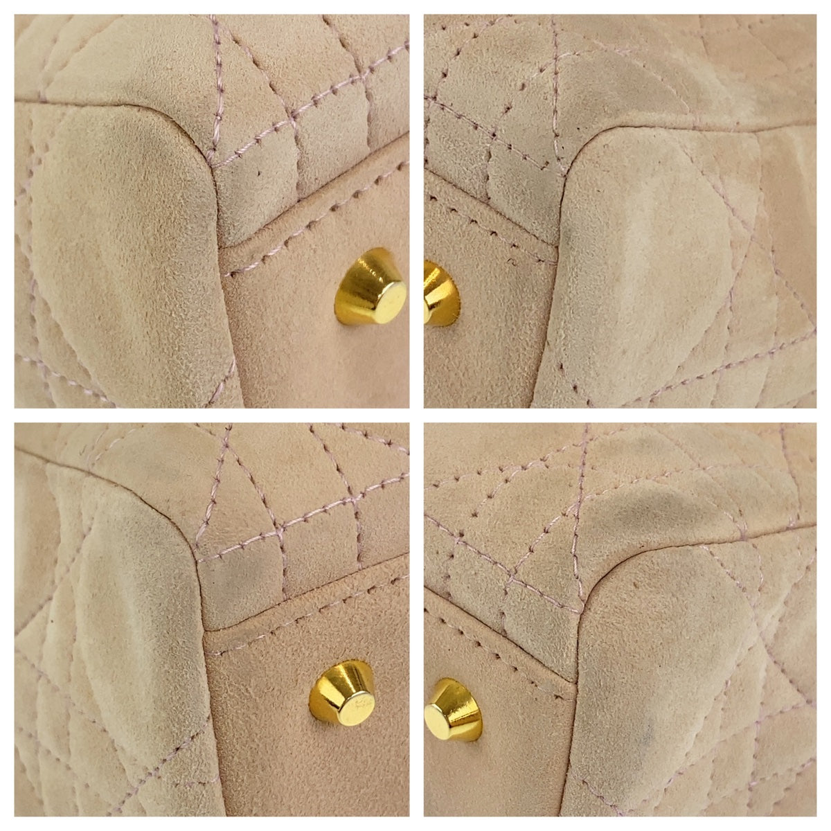10086 Christian Dior クリスチャンディオール カナージュ レディディオール ストラップあり ピンクベージュ ゴールド金具 スウェード / レザー ハンドバッグ 2way ショルダーバッグ レディース