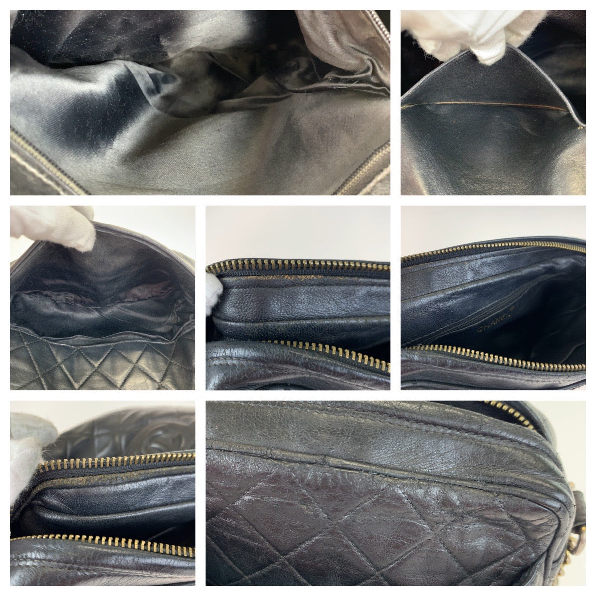 10151 CHANEL シャネル ヴィンテージ マトラッセ タッセル ココマーク ブラック ゴールド金具 ラムスキン チェーンショルダーバッグ 斜め掛け ポシェット レディース