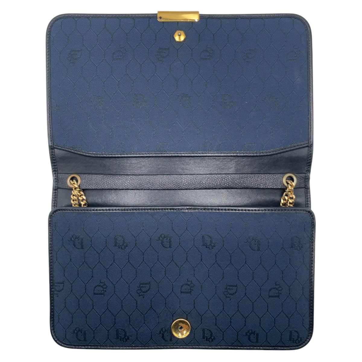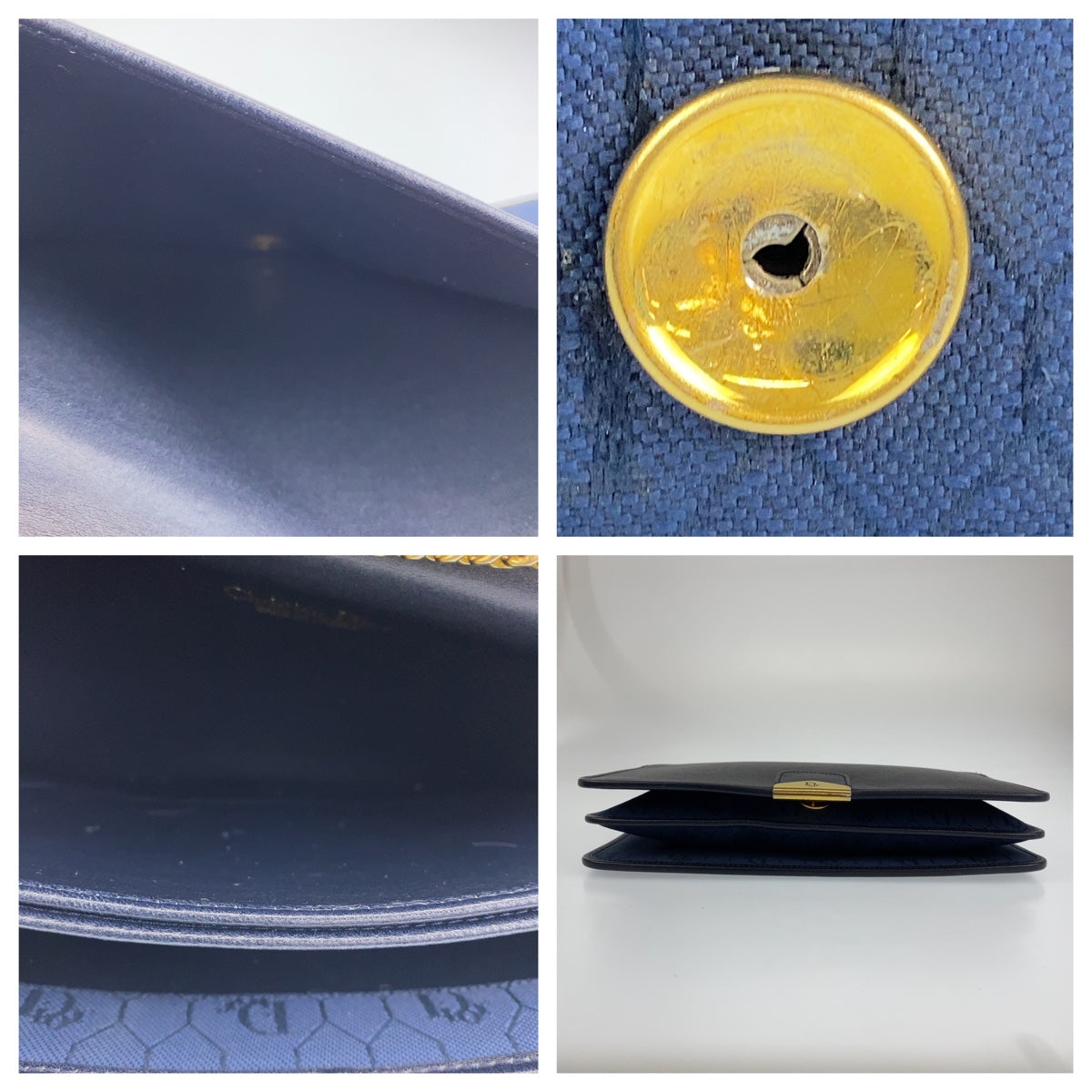 10163 Christian Dior クリスチャンディオール ヴィンテージ 中ハニカム柄 ブラック 黒 ゴールド金具 レザー 斜め掛け ショルダーバッグ ポシェット レディース