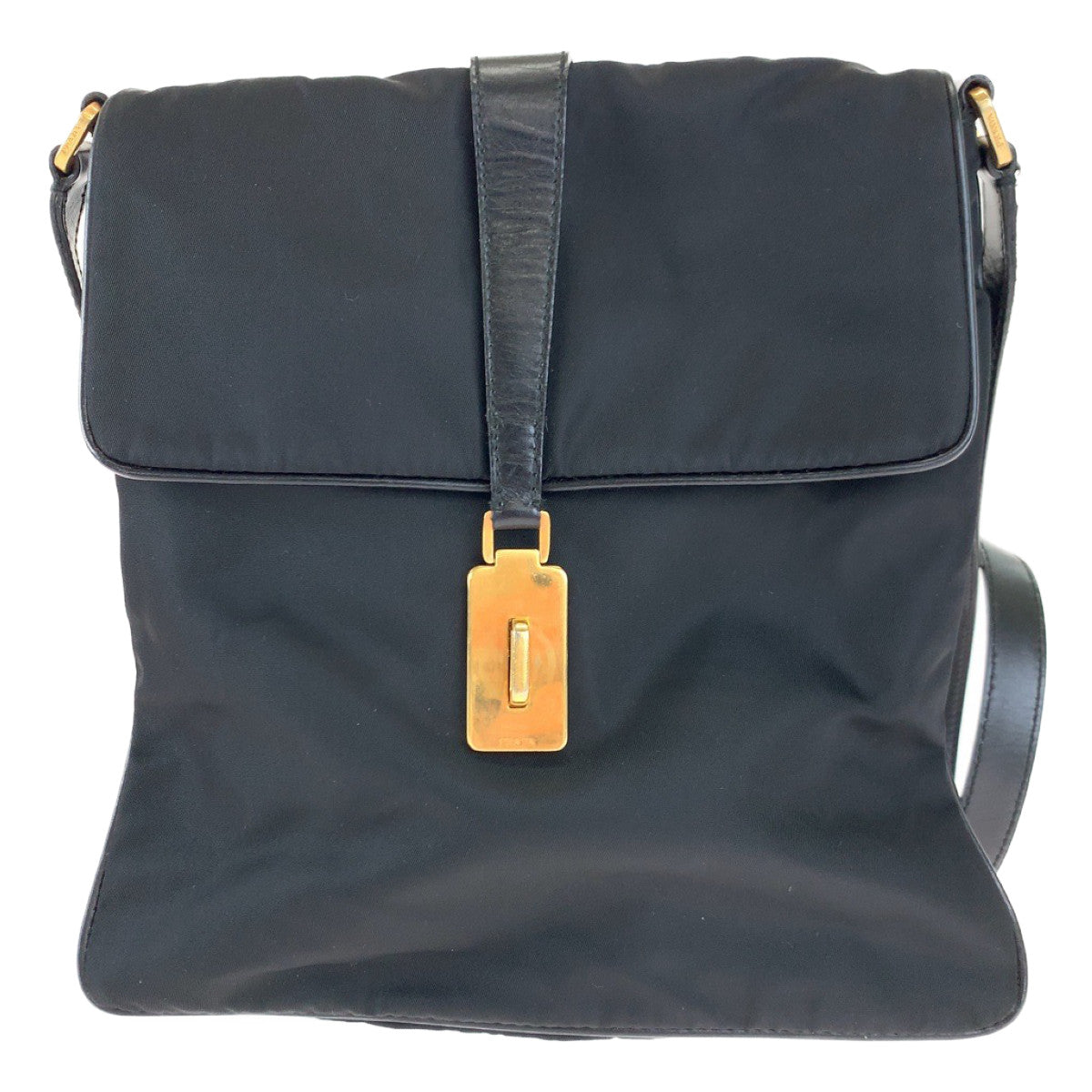 10201 PRADA プラダ テスート 三角ロゴ 男女兼用 ブラック 黒 ゴールド金具 ナイロン 斜め掛け ショルダーバッグ ポシェット レディース