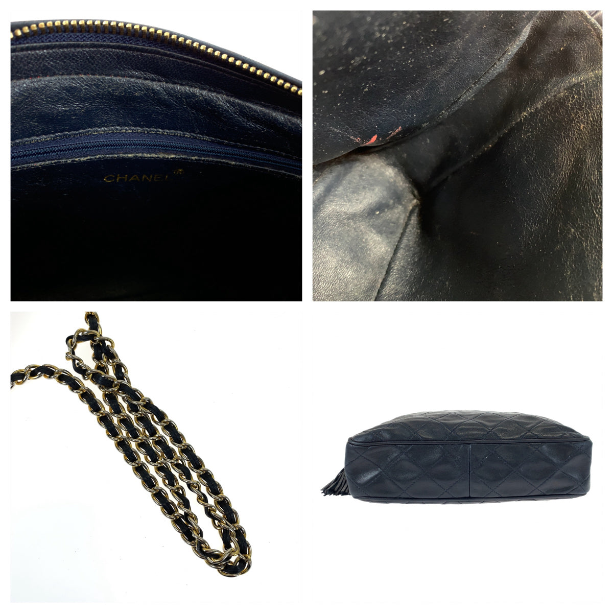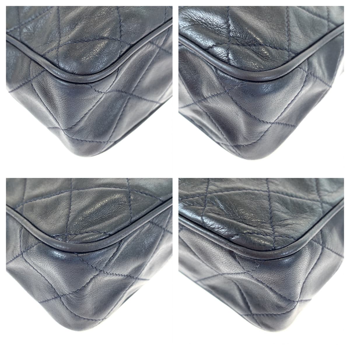 10208 CHANEL シャネル ヴィンテージ マトラッセ ココマーク フリンジ ネイビー ゴールド金具 ラムスキン ショルダーバッグ 斜め掛け レディース