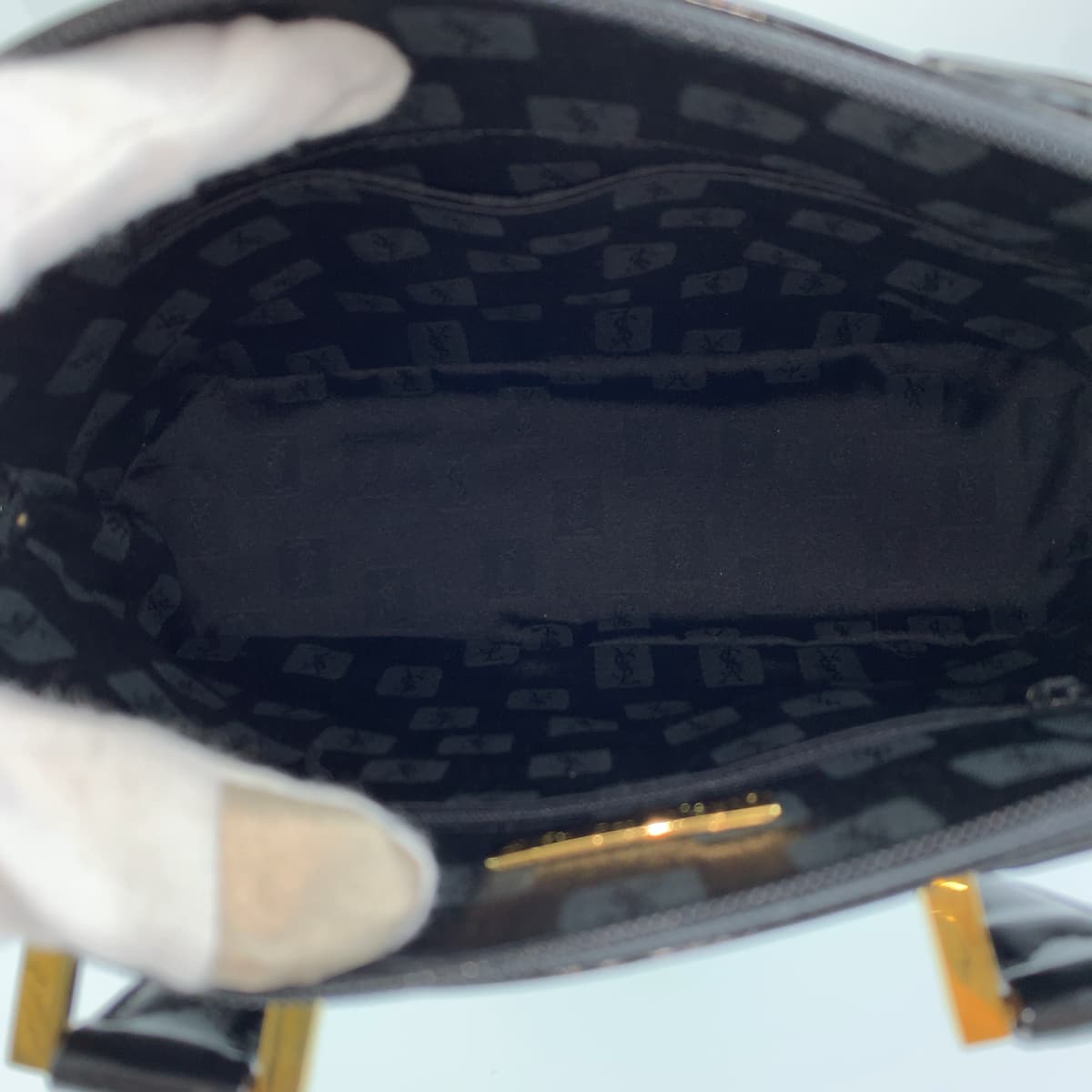 YVES SAINT LAURENT イヴ・サンローラン ヴィンテージ YSL ロゴチャーム ブラック 黒 ゴールド金具 レザー ハンドバッグ トートバッグ レディース