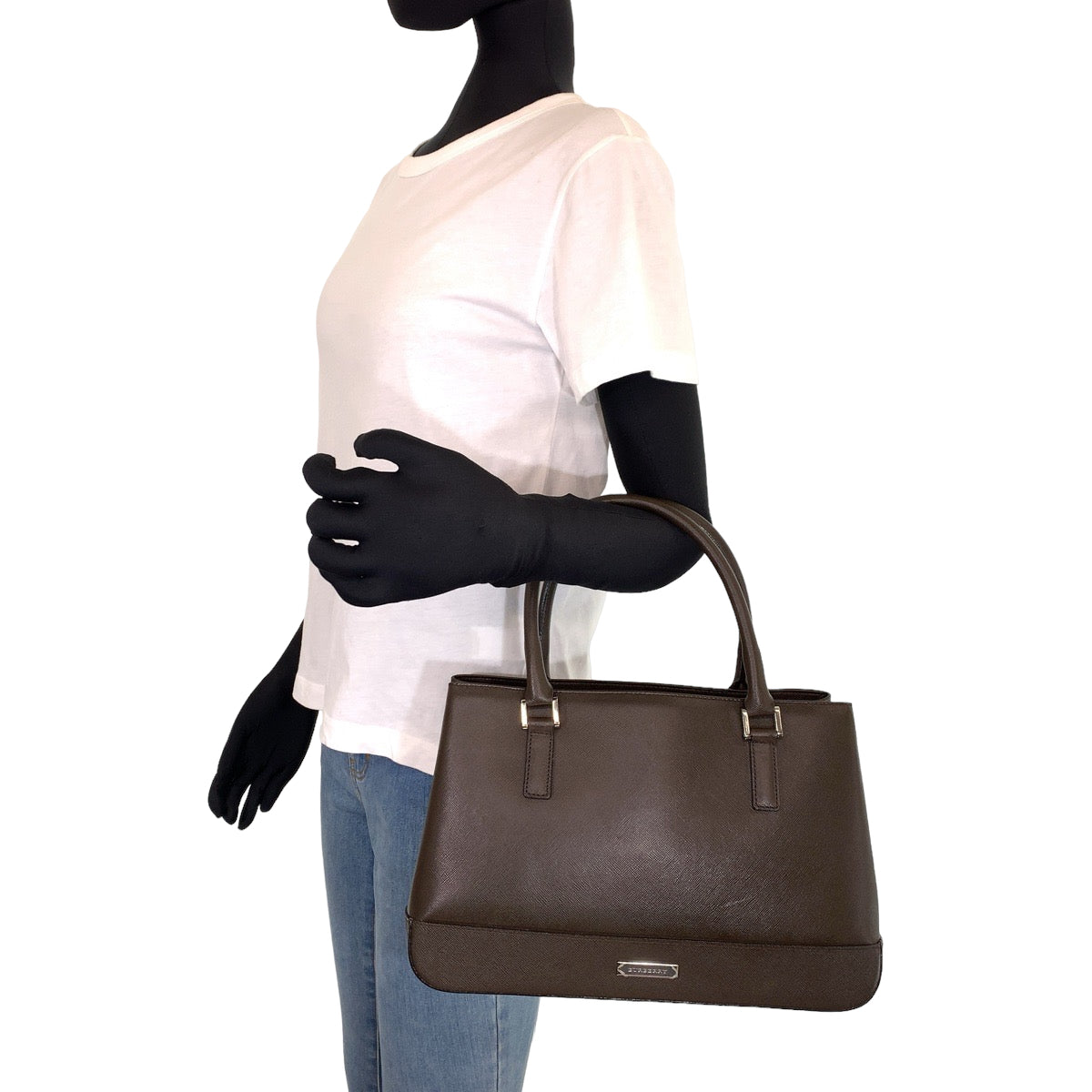 10268 BURBERRY バーバリー 中チェック柄 ブラウン レザー ハンドバッグ トートバッグ レディース
