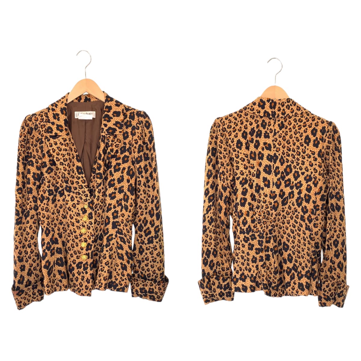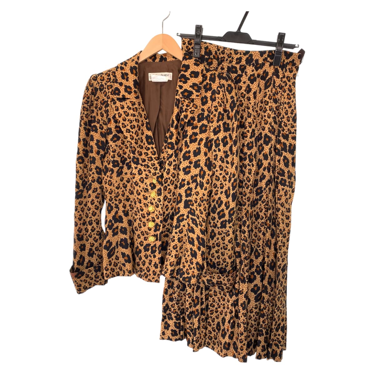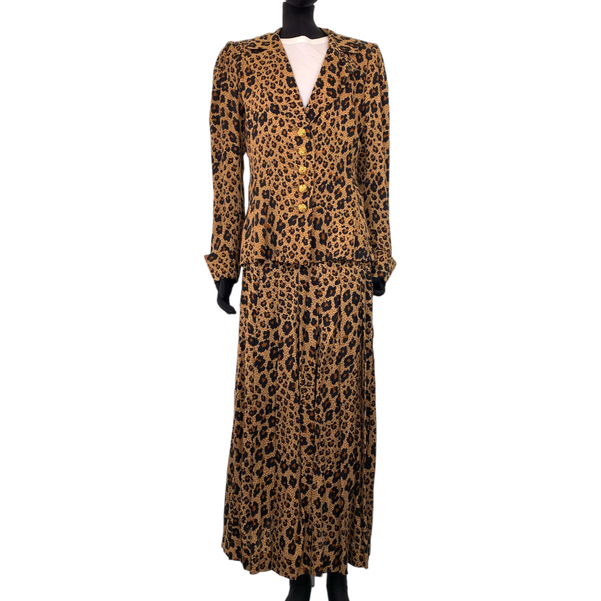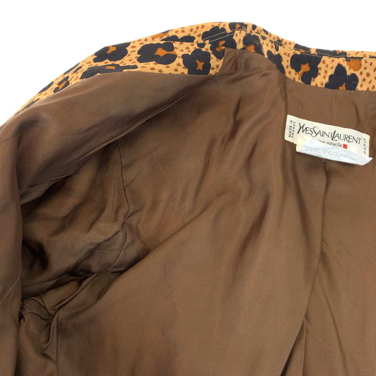 YVES SAINT LAURENT イヴ・サンローラン レオパード柄 サイズ38 ブラウン 茶 シルク セットアップ 上下セット レディース