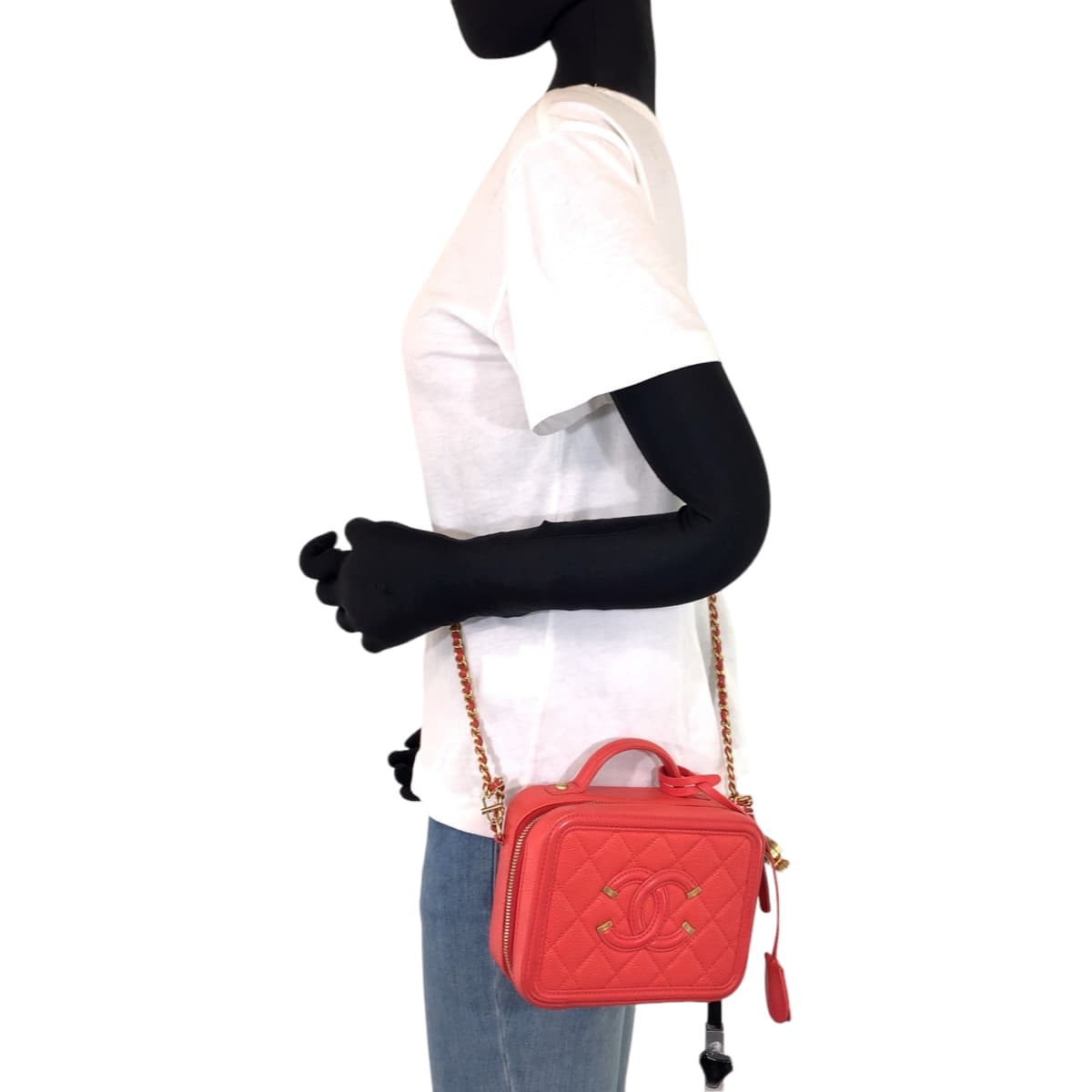 10288 CHANEL シャネル CCフィリグリー ココマーク レッド 赤 ゴールド金具 キャビアスキン 93343 バニティバッグ ショルダーバッグ ポシェット レディース