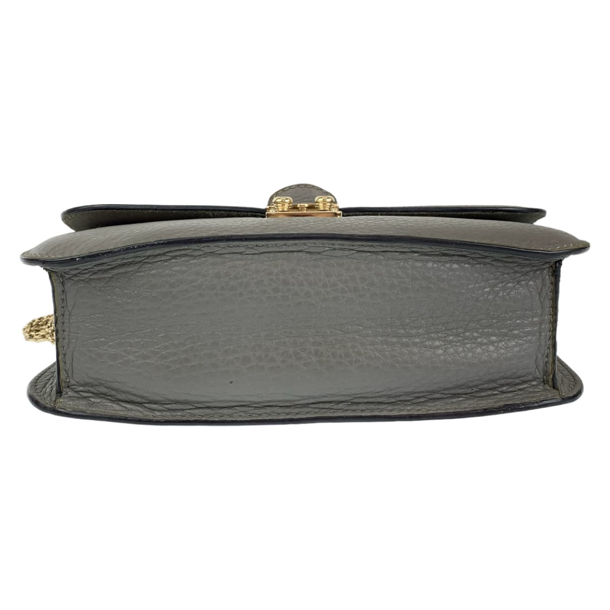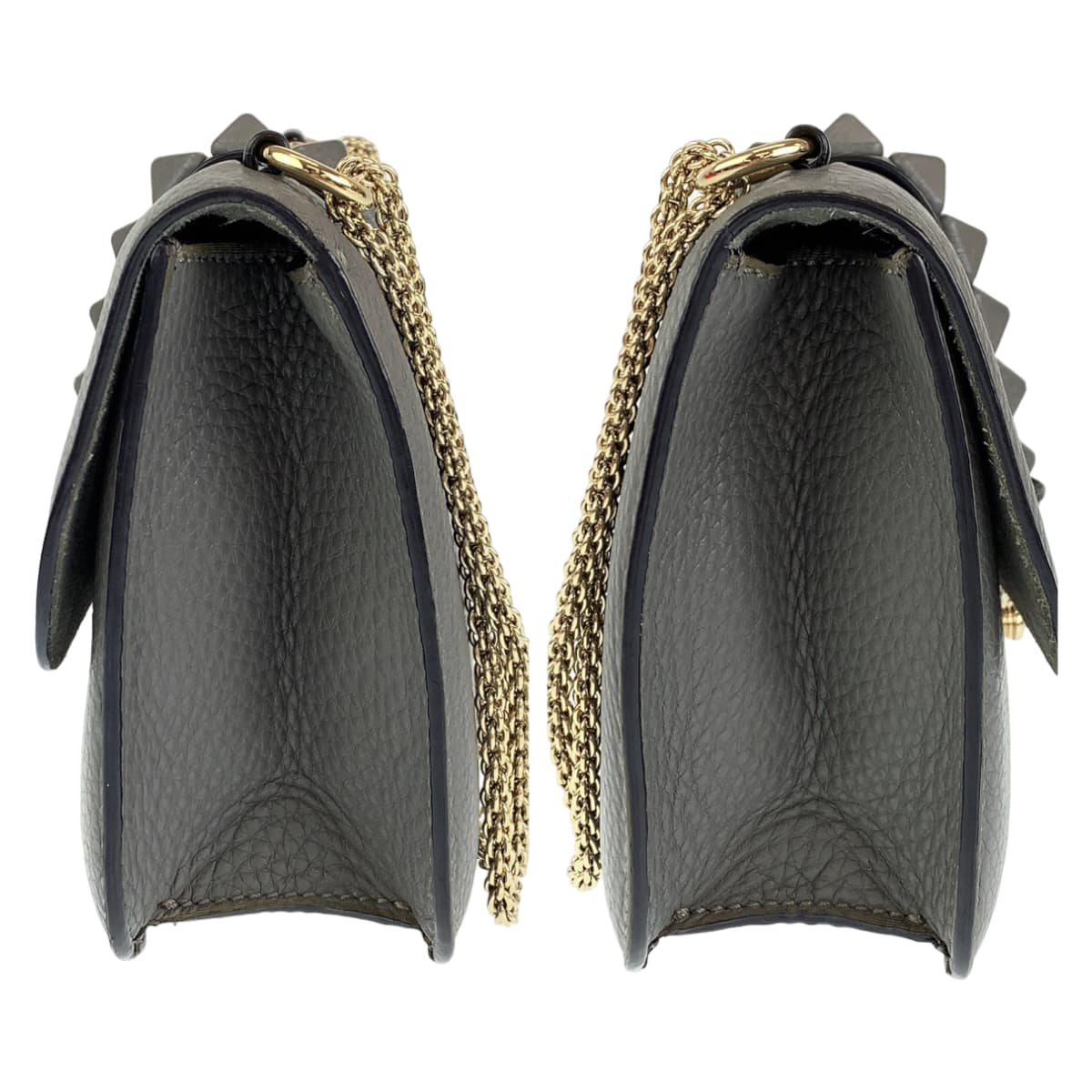 10294 VALENTINO ヴァレンティノ ロックスタッズ ダブルチェーン グレー レザー 斜め掛け ショルダーバッグ ポシェット レディース