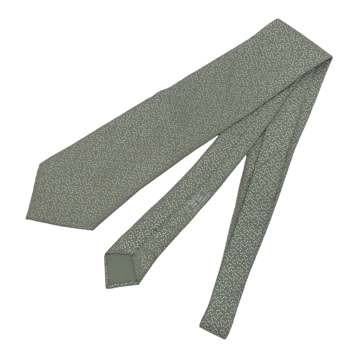 12619 HERMES エルメス ドット柄 グリーン ホワイト シルク 7902 MA ネクタイ 剣先10cm メンズ ABP5