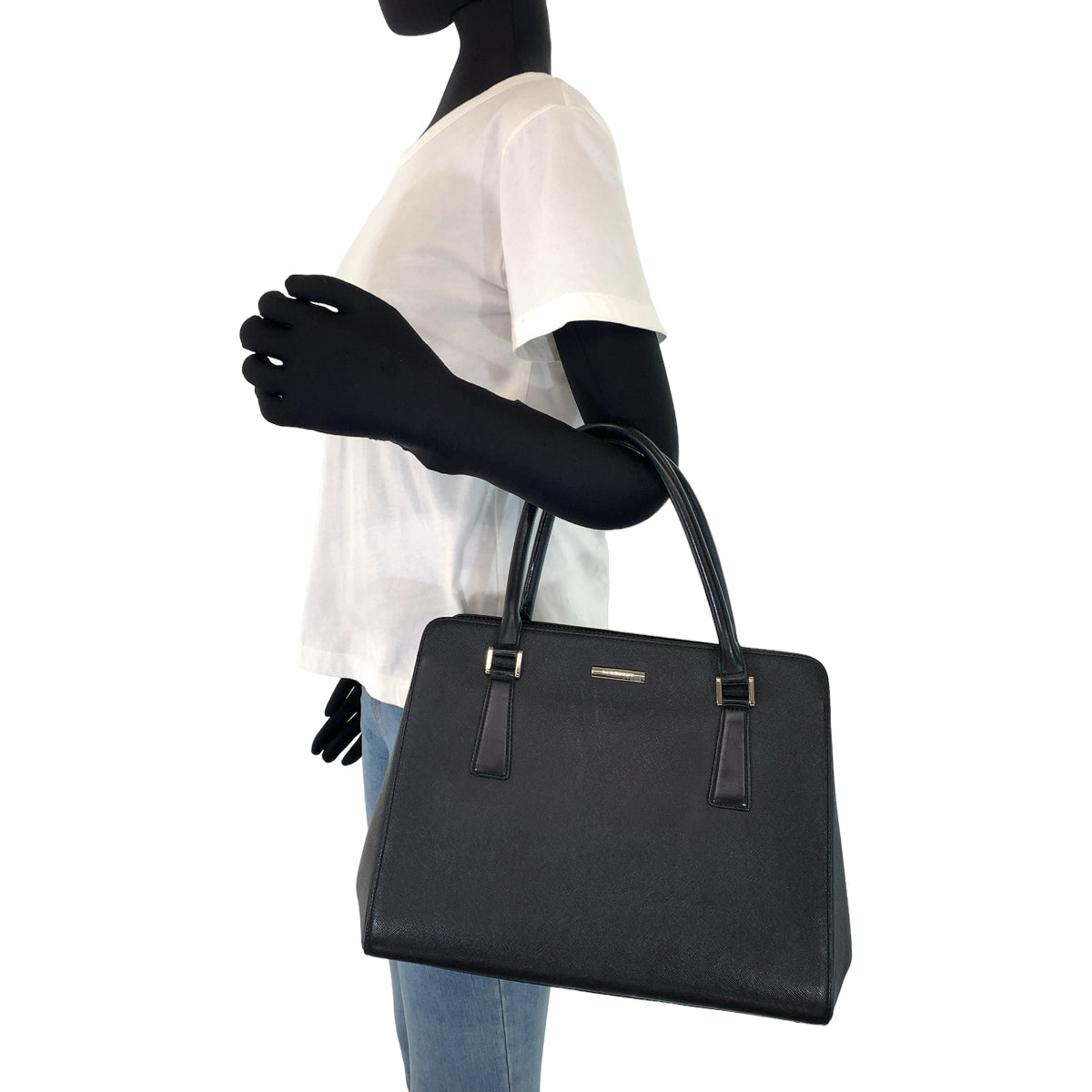 10340 BURBERRY バーバリー 中チェック柄 ブラック レザー ハンドバッグ トートバッグ レディース
