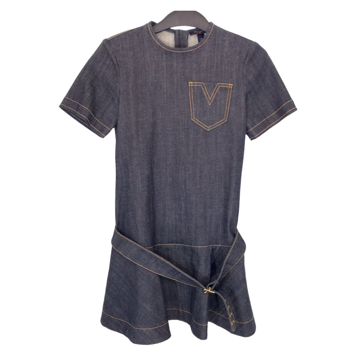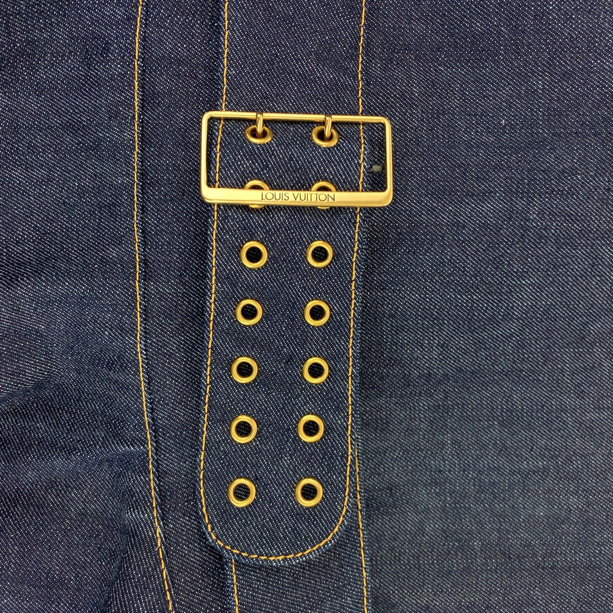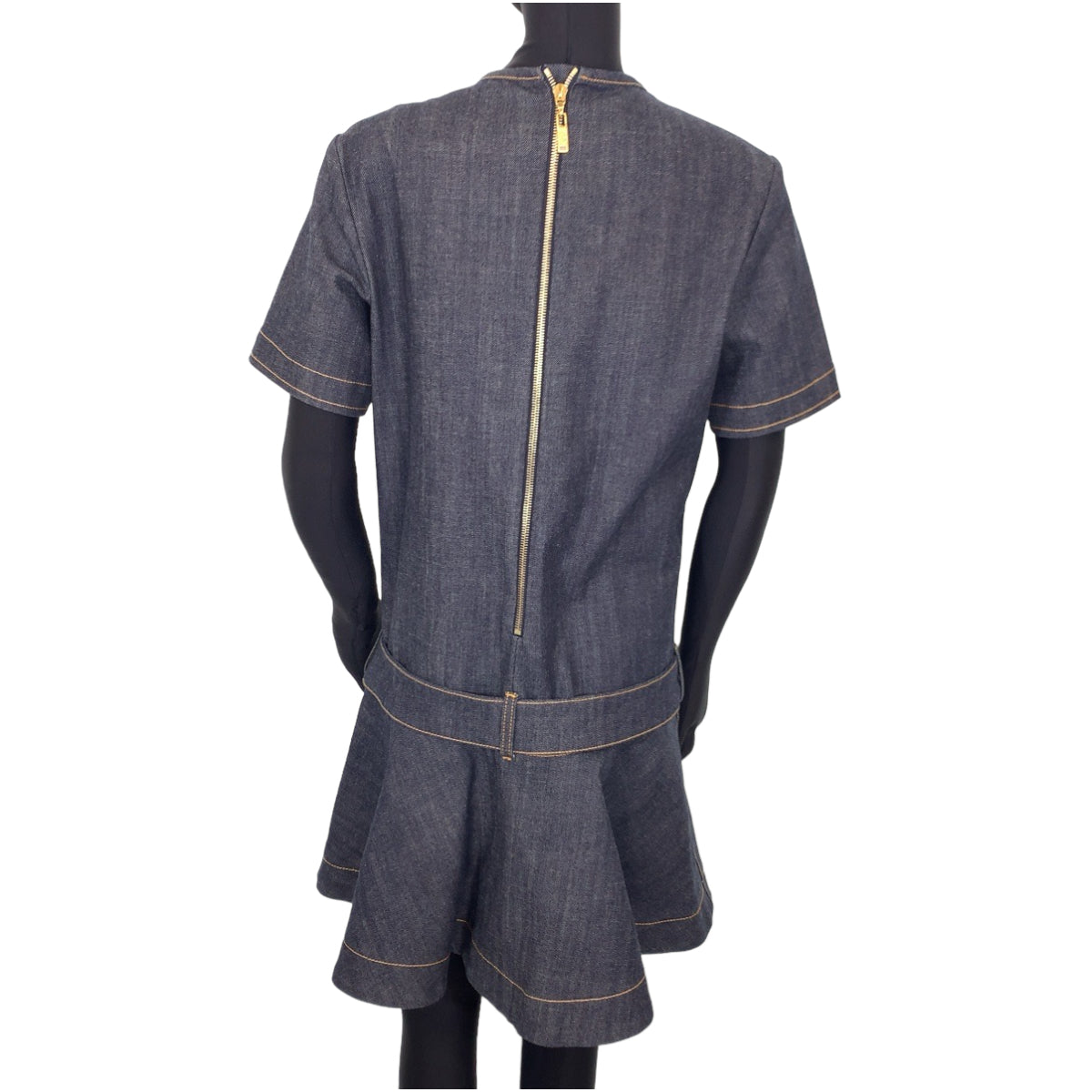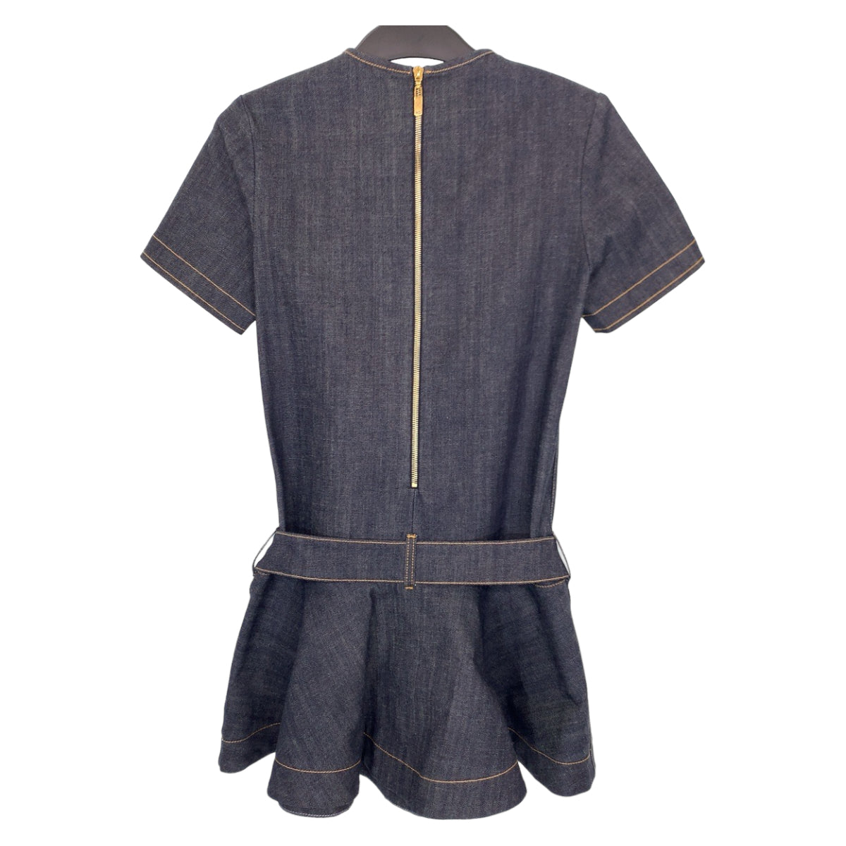 10359 LOUIS VUITTON ルイヴィトン Vステッチ サイズ38 ブルー インディゴ デニム RW181W FGK FEDR15 半袖 ワンピース ベルト付き レディース SA55