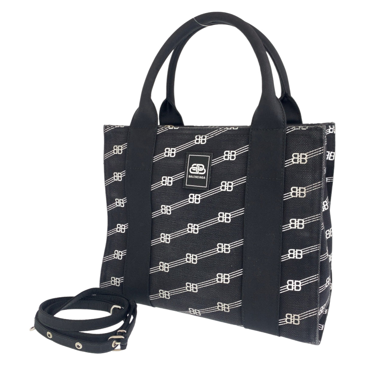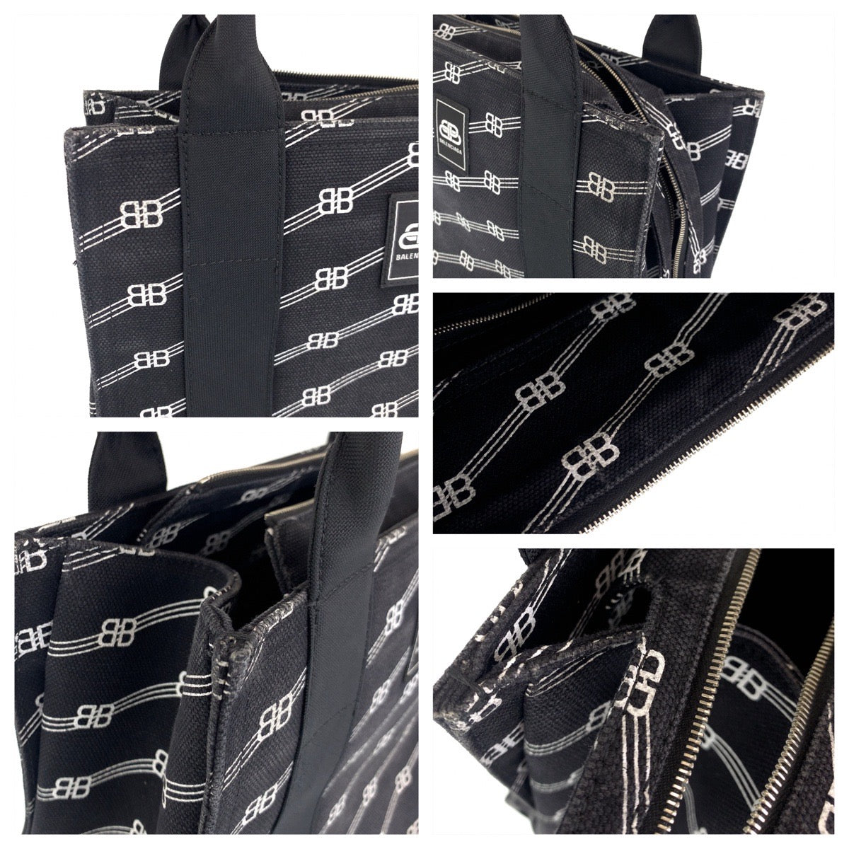 10363 BALENCIAGA バレンシアガ ロゴ トレードS BBモノグラム 男女兼用 ブラック ホワイト キャンバス 620884 トートバッグ ショルダーバッグ ハンドバッグ メンズ