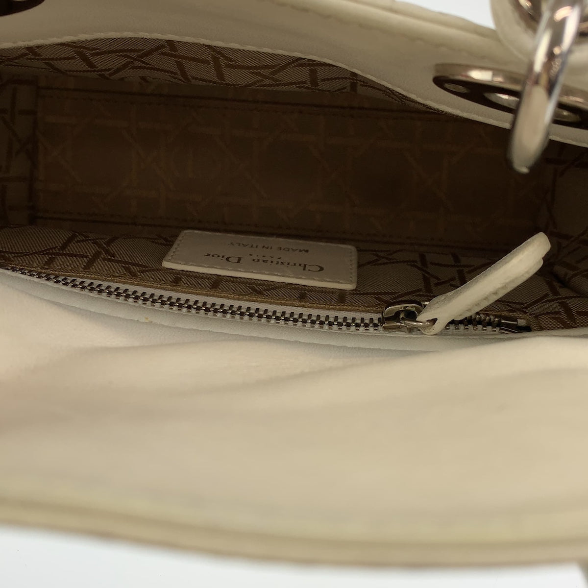 10375 Dior ディオール レディディオール カナージュ ホワイト シルバー金具 レザー ハンドバッグ チェーンショルダーバッグ 2way レディース