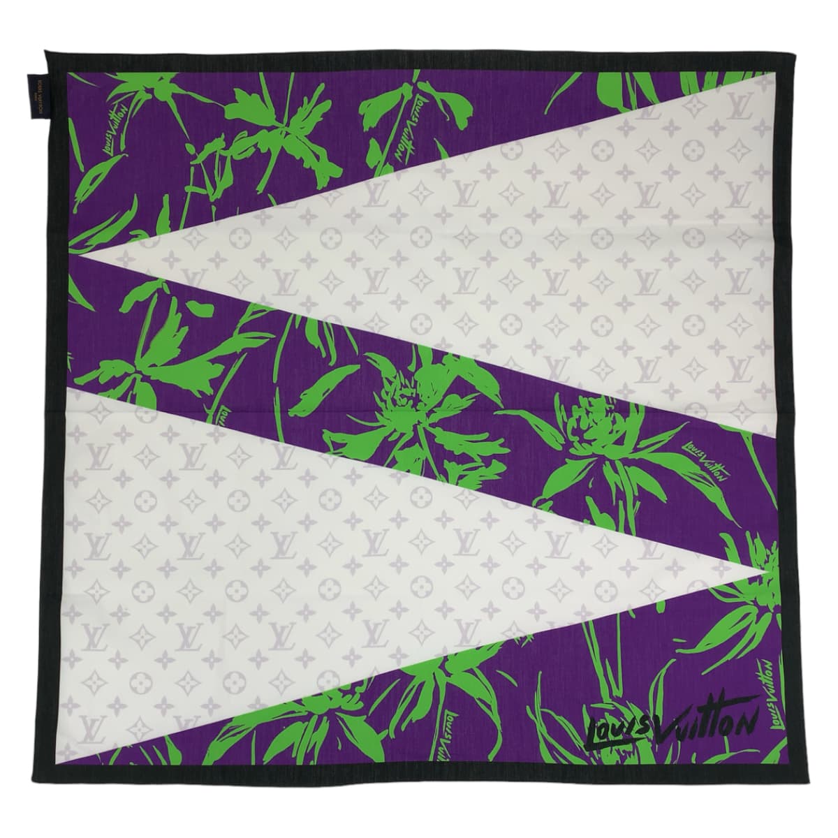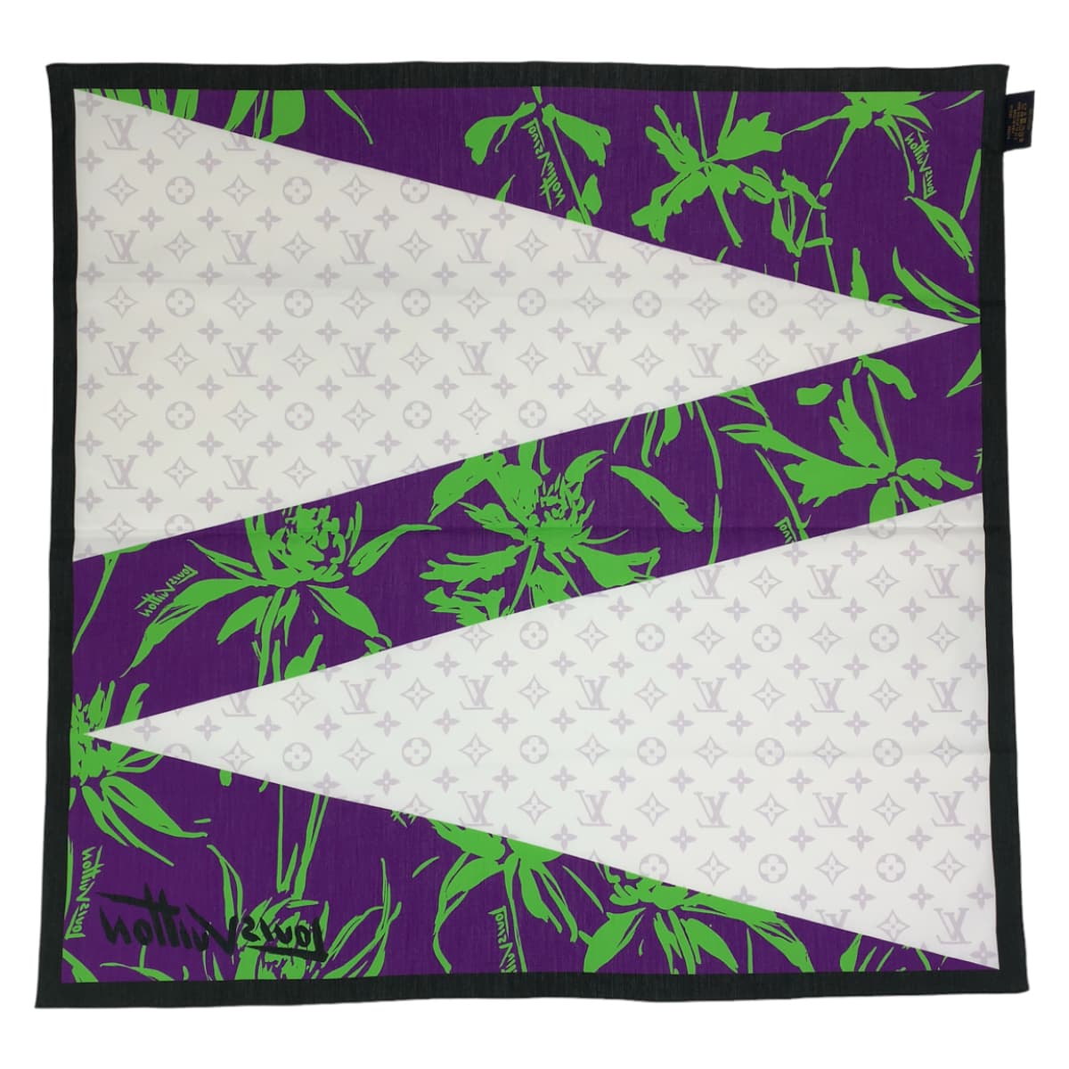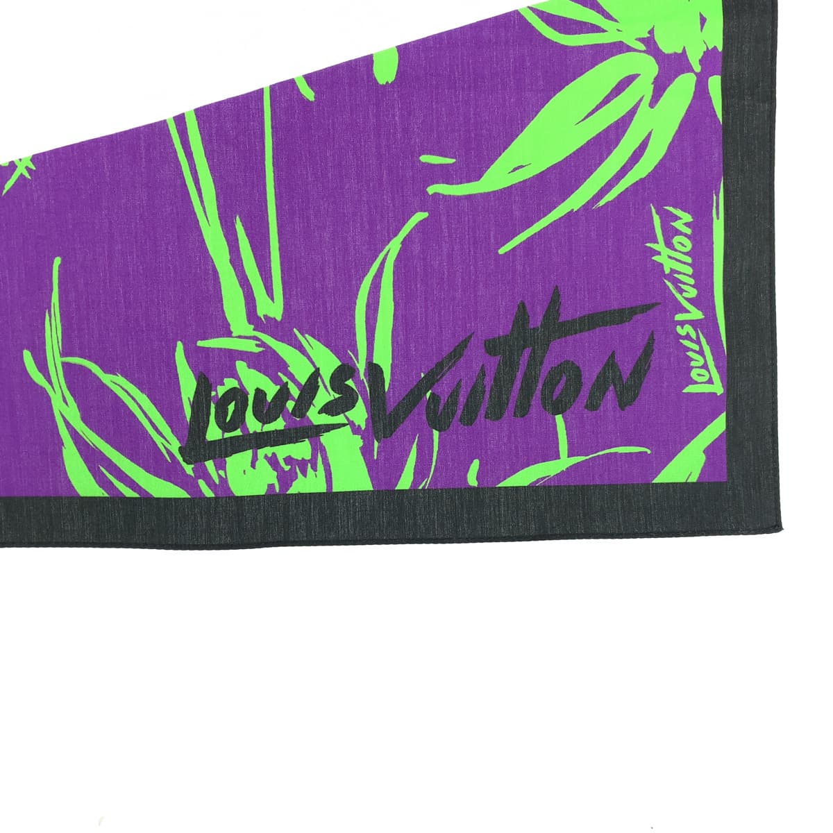 10413 LOUIS VUITTON ルイヴィトン モノグラム リーフ柄 パープル ホワイト グリーン コットン スカーフ ストール バンダナ メンズ