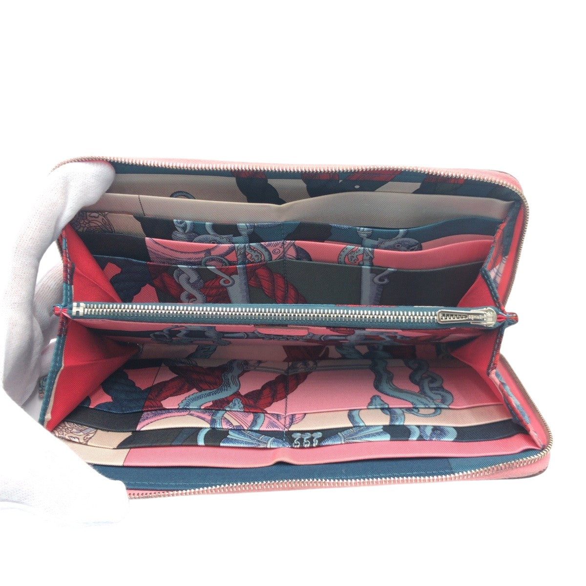 10418 HERMES エルメス アザップ ロング シルクイン ローズコンフェッティ ピンク シルバー金具 ヴォーエプソン 長財布 ロングウォレット ラウンドファスナー T刻印 レディース