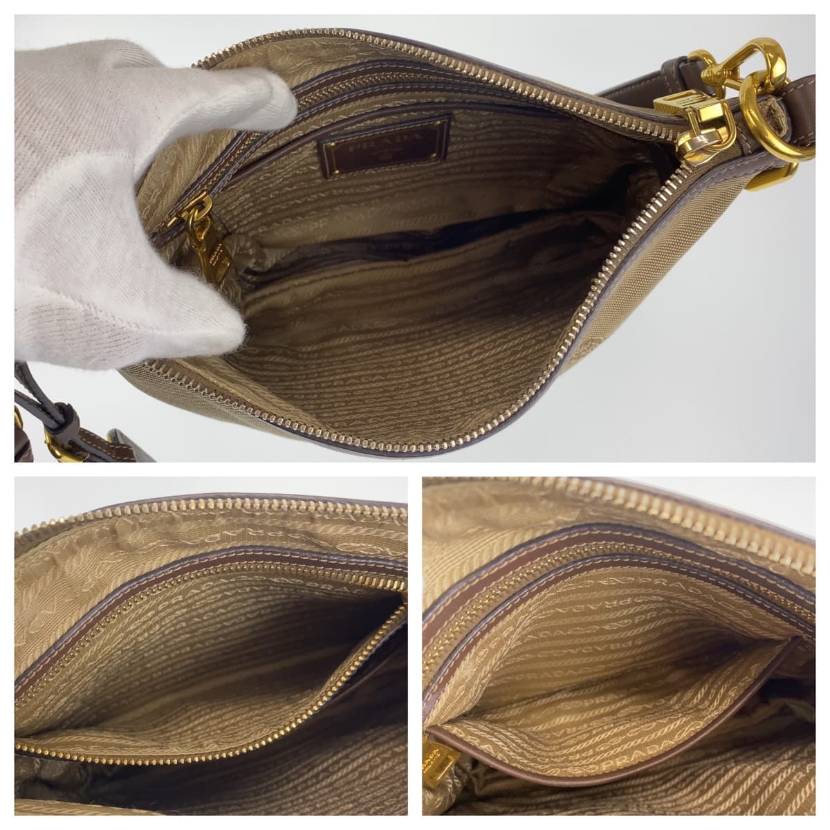 10528 PRADA プラダ ロゴジャガード ベージュ ブラウン キャンバス ショルダーバッグ 斜め掛け ポシェット 男女兼用 レディース A46