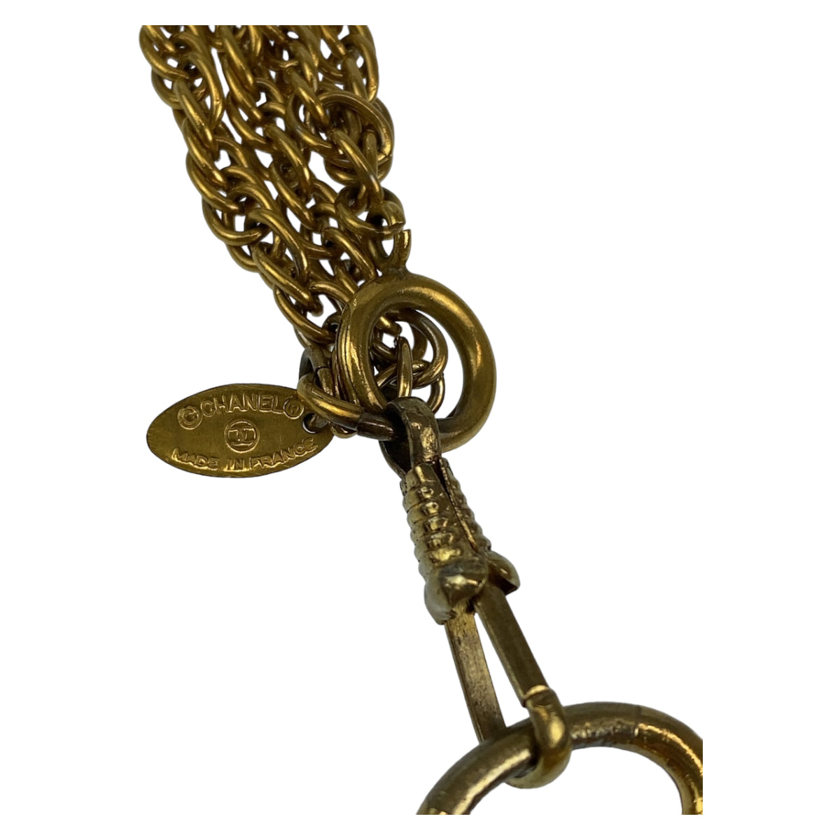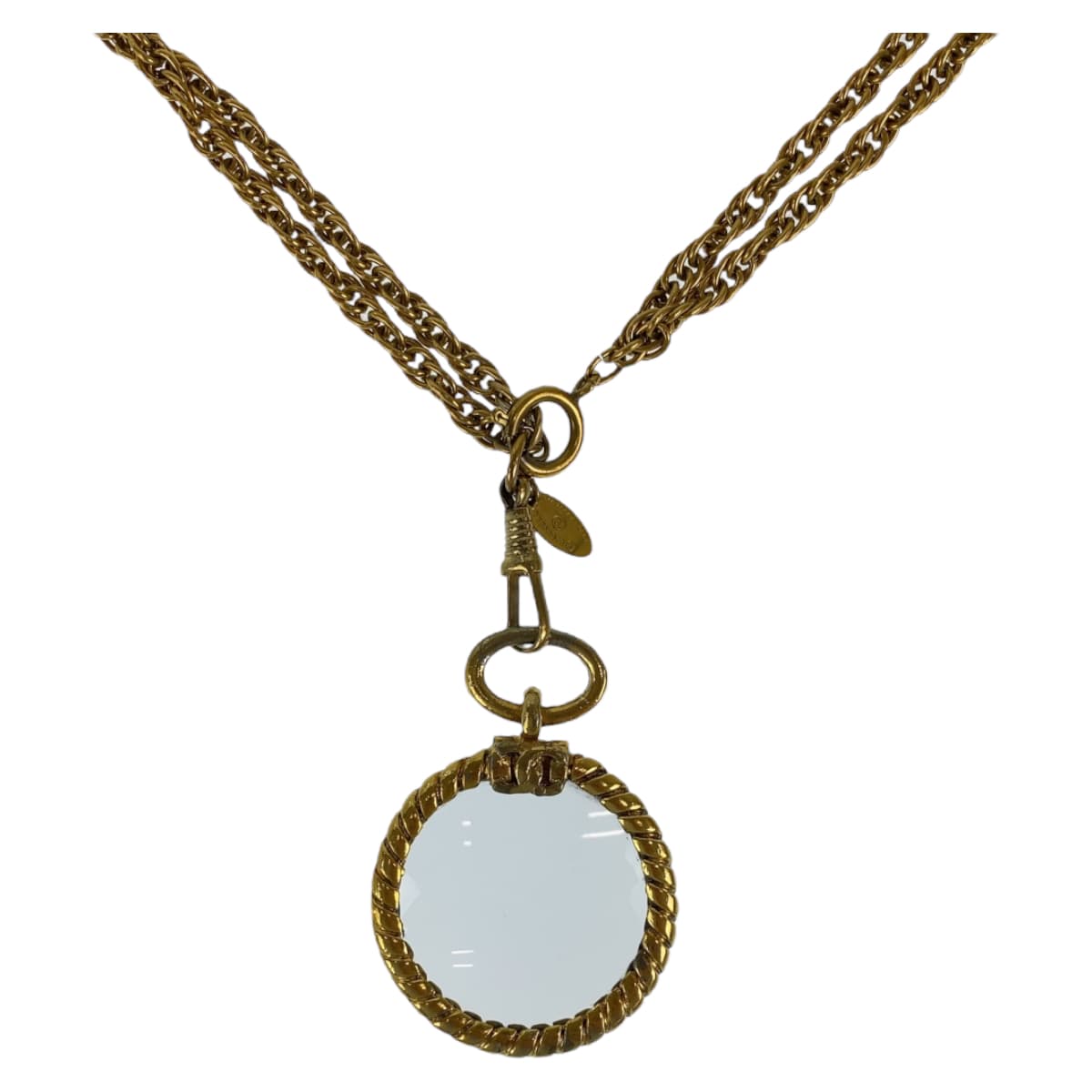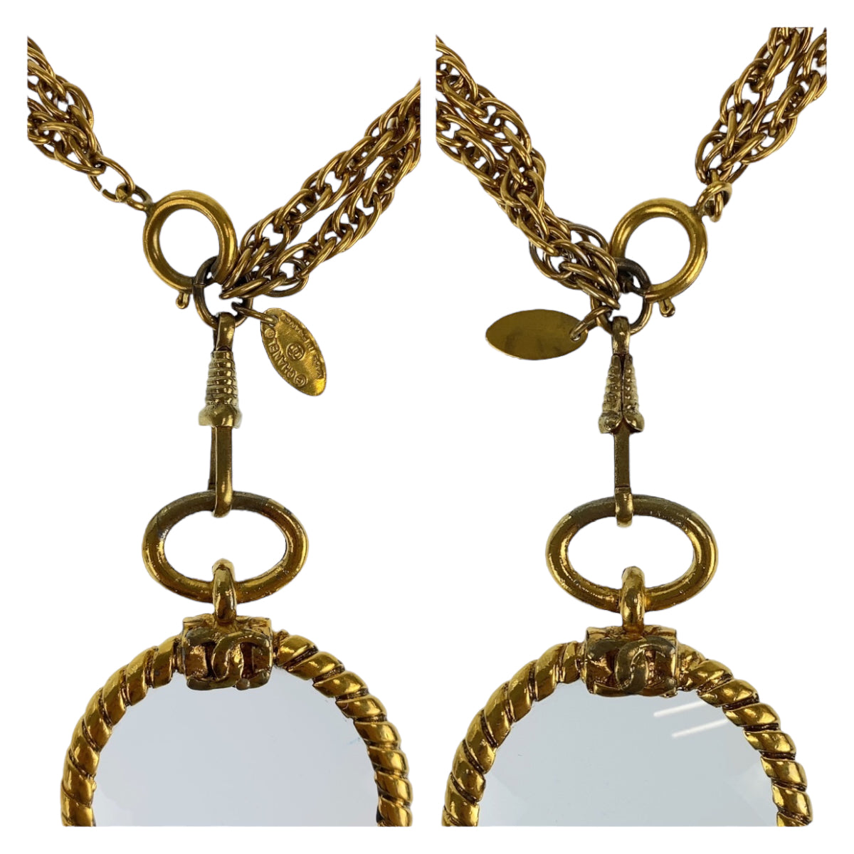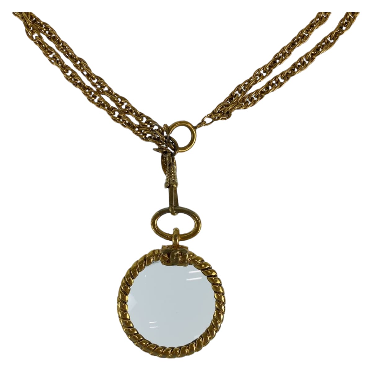 10538 CHANEL シャネル ヴィンテージ ココマーク ルーペ コメ有り ゴールド 金 メタル ダブルチェーン ペンダント レディース