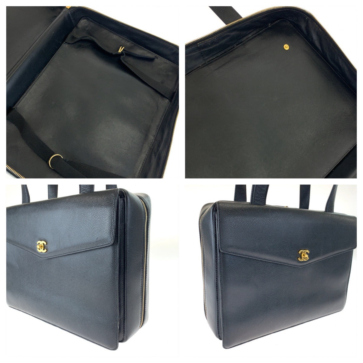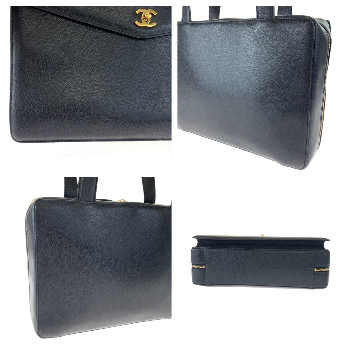 10541 CHANEL シャネル ヴィンテージ ココマーク 男女兼用 ブラック 黒 ゴールド金具 キャビアスキン ビジネスバッグ ブリーフケース トートバッグ A4収納 メンズ