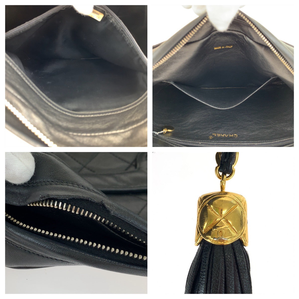 10588 CHANEL シャネル ヴィンテージ マトラッセ ココマーク フリンジ ブラック 黒 ゴールド金具 ラムスキン 斜め掛け ショルダーバッグ ポシェット レディース