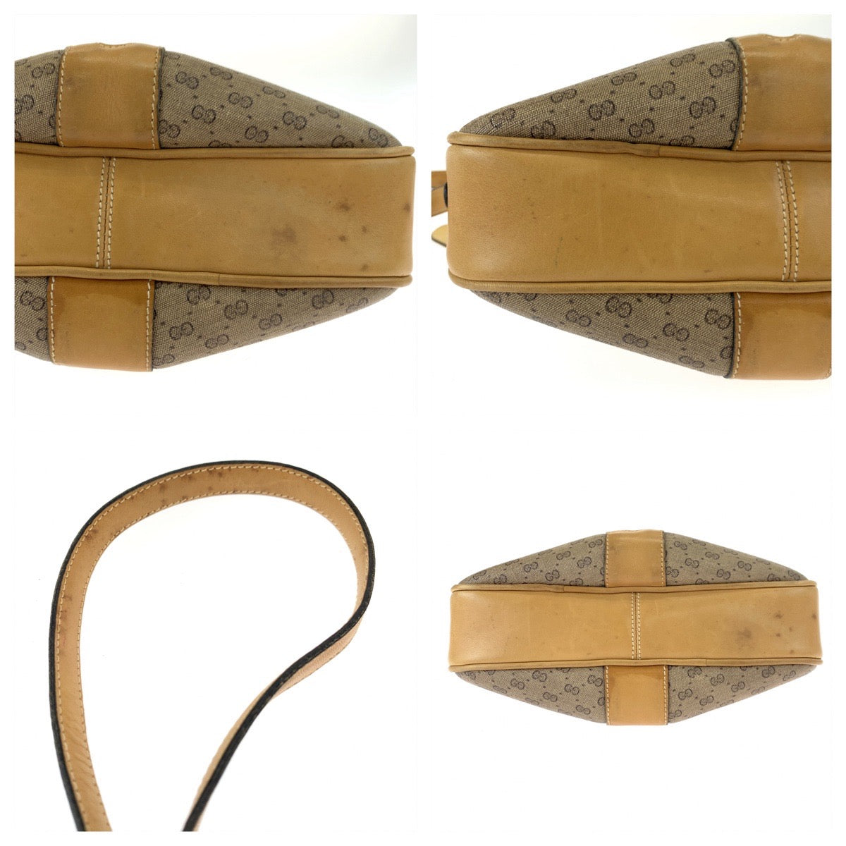 10608 GUCCI グッチ ヴィンテージ オールドグッチ シェリー マイクロGG ベージュ ブラウン ゴールド金具 GGキャンバス 斜め掛け ショルダーバッグ ポシェット レディース