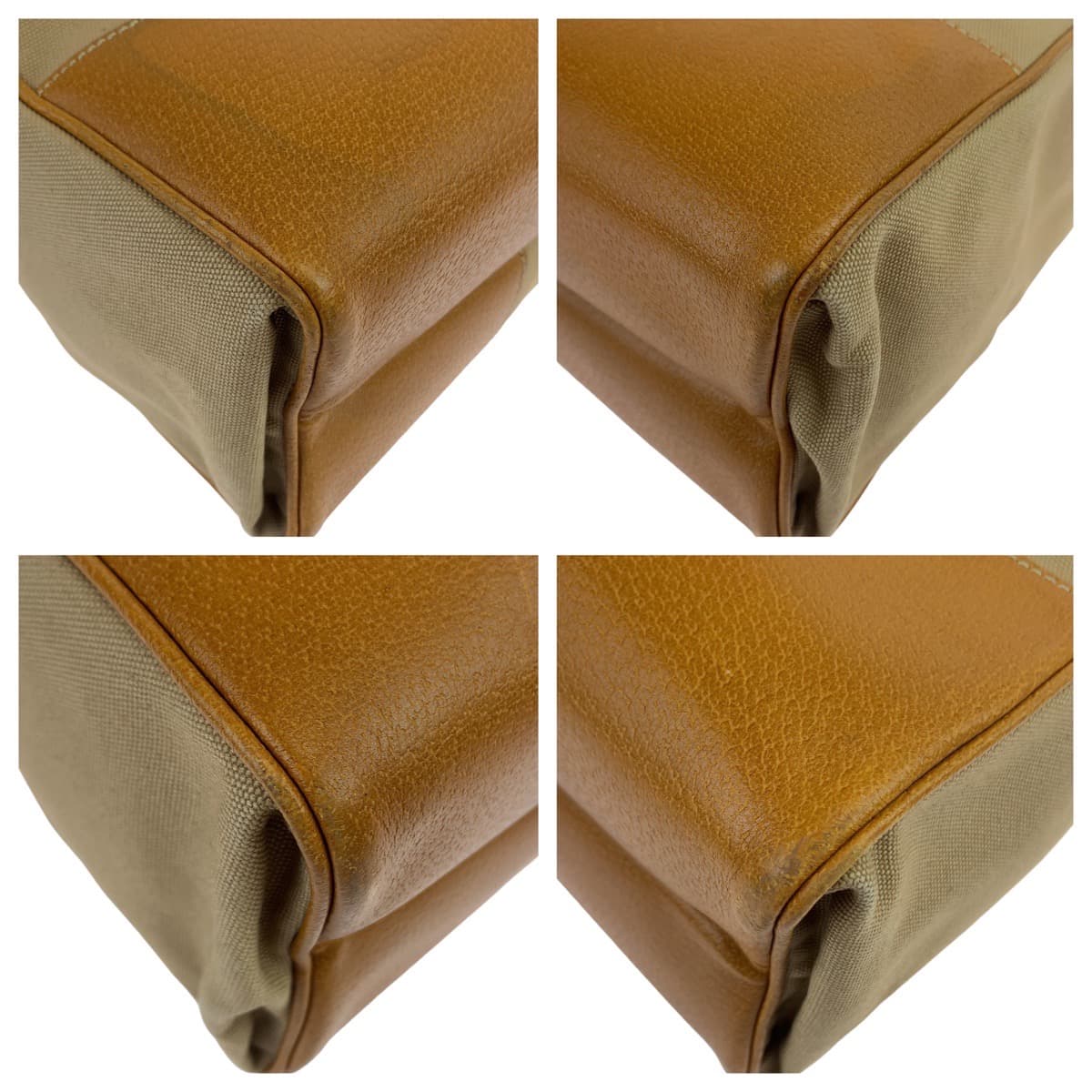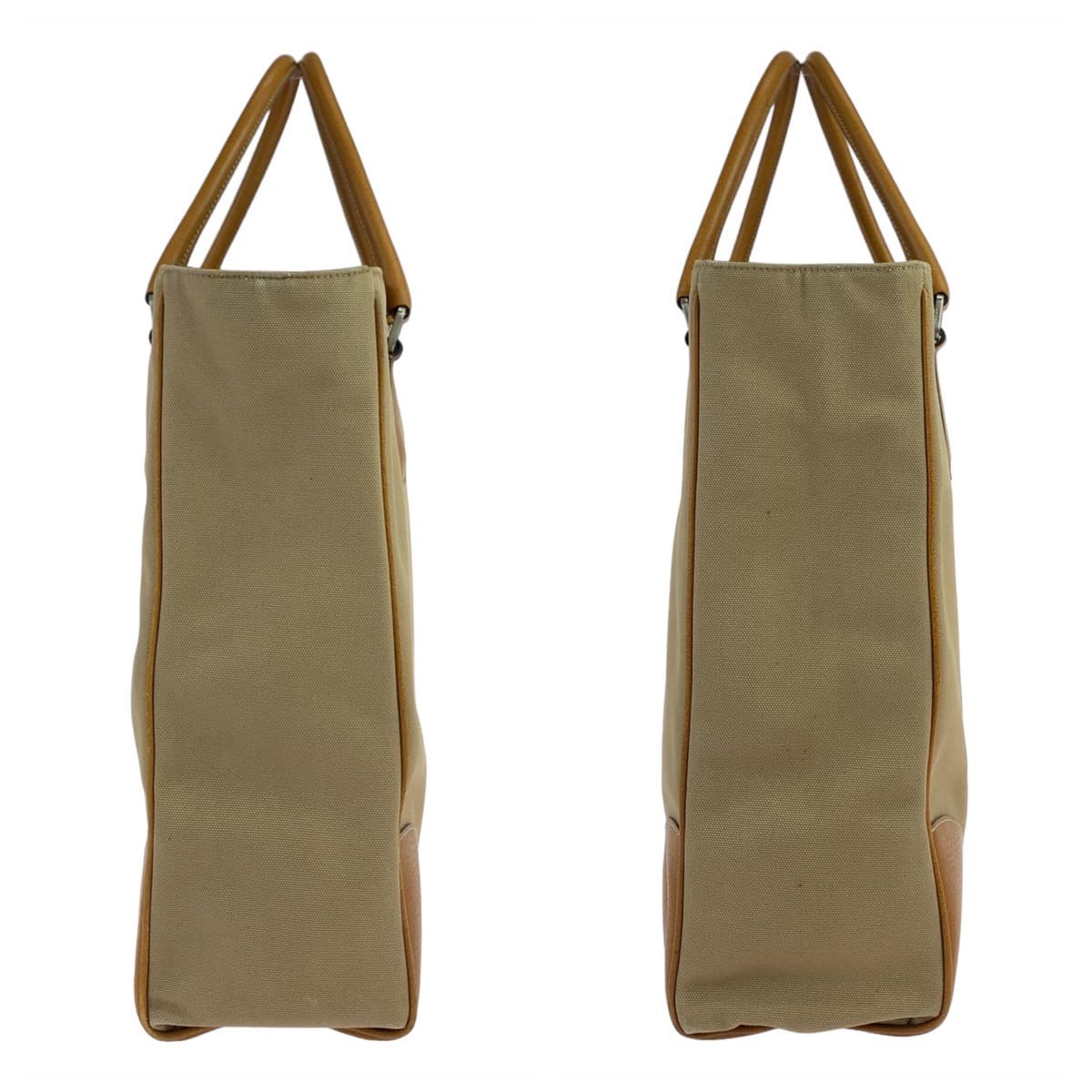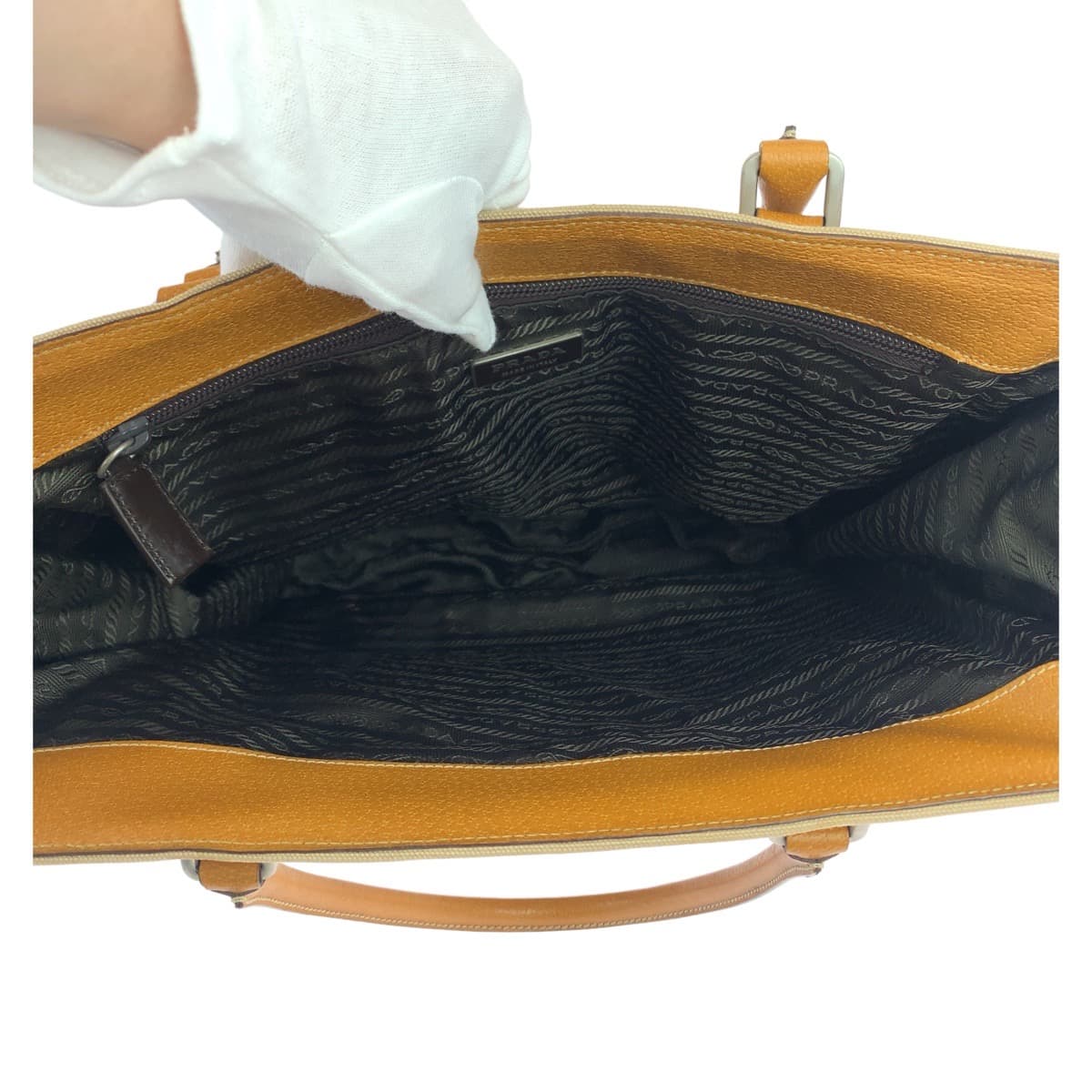 10611 PRADA プラダ 三角ロゴプレート 男女兼用 ベージュ キャメル シルバー金具 キャンバス / レザー トートバッグ ハンドバッグ メンズ