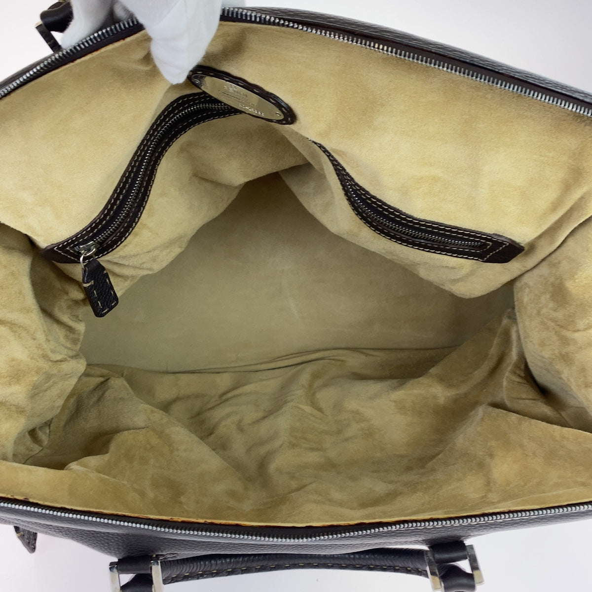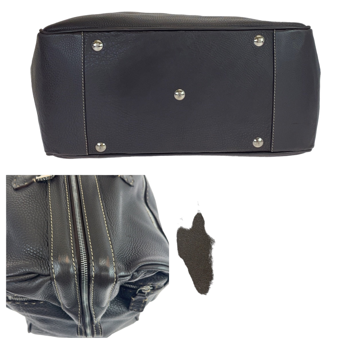 10613 FENDI フェンディ セレリア ブラウン 茶 シルバー金具 レザー ボストンバッグ 旅行バッグ メンズ