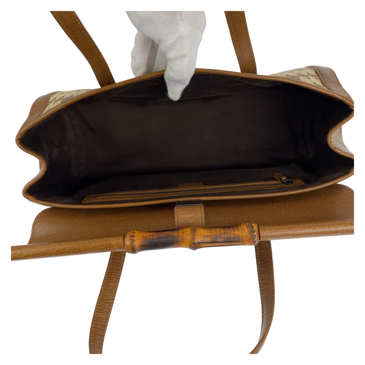 10650 GUCCI グッチ バンブー ブラウン 茶 キャメル ベージュ ブラック金具 GGキャンバス 111715 ショルダーバッグ 筒型 肩掛け レディース