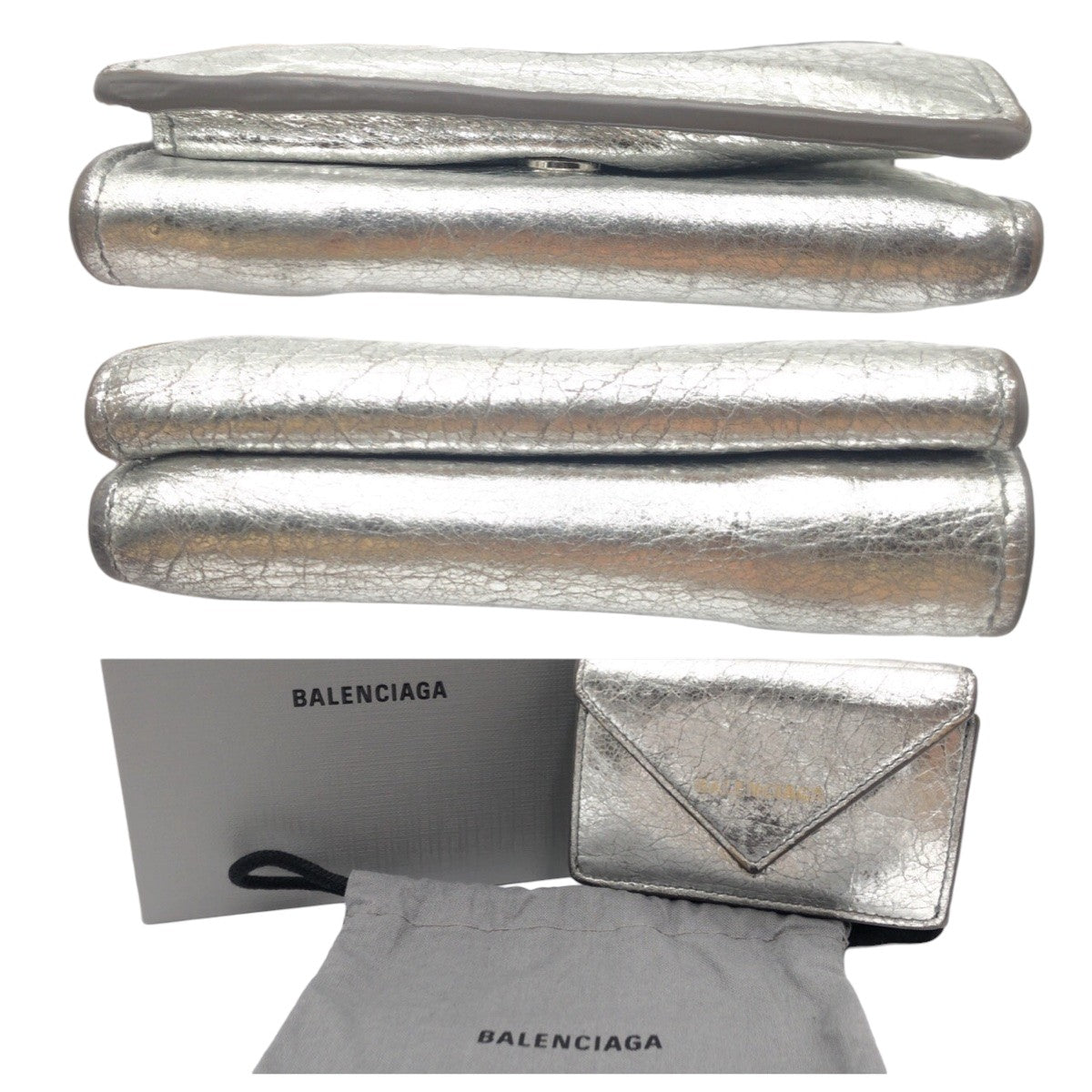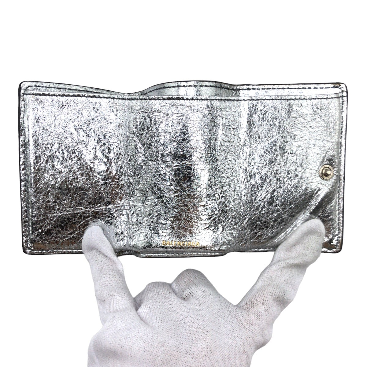 10683 BALENCIAGA バレンシアガ ペーパー 男女兼用 シルバー シルバー金具 レザー 391446 1414 折財布 コンパクトウォレット メンズ