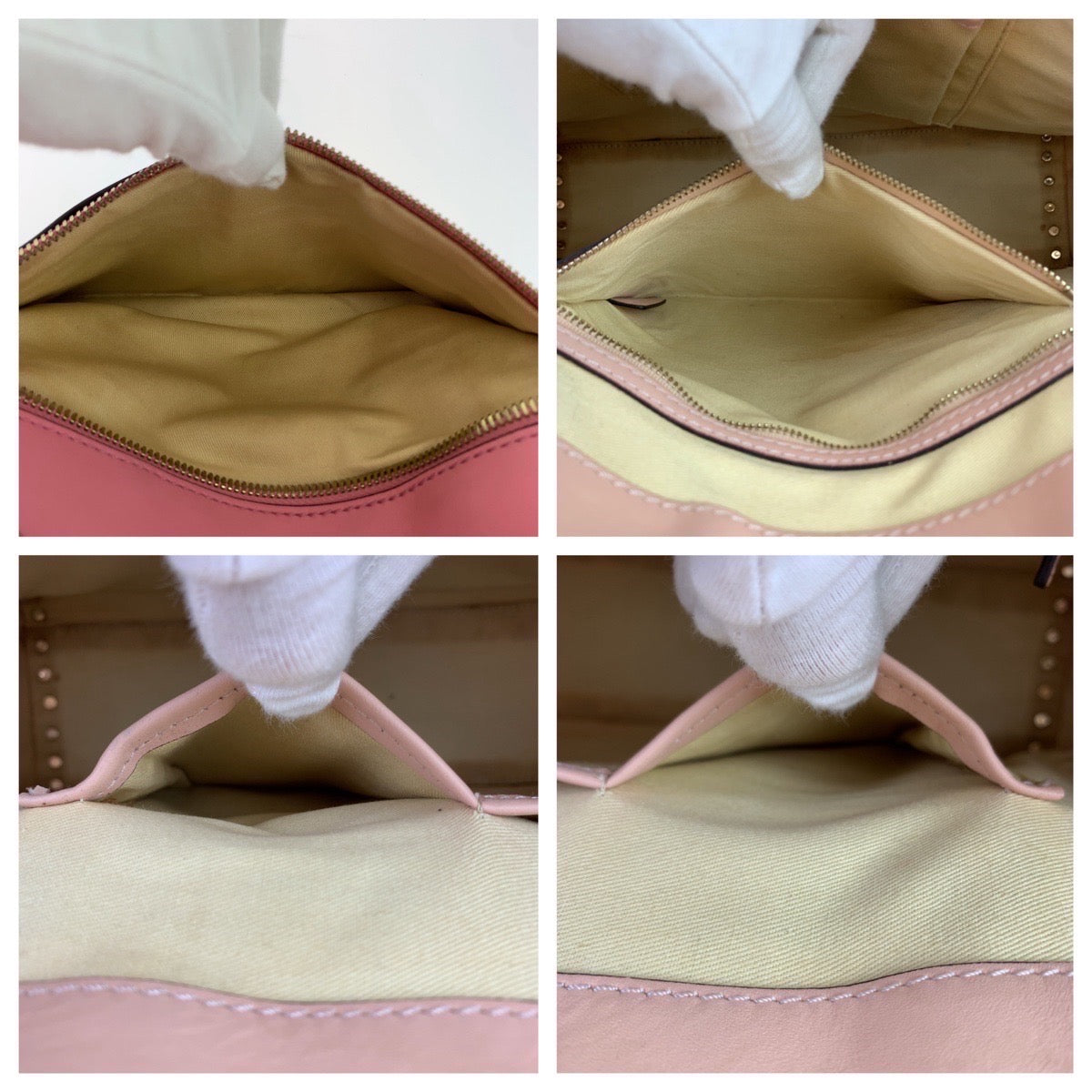 VALENTINO ヴァレンティノ ロックスタッズ ピンク グリーン 緑 ゴールド金具 レザー ショルダーバッグ トートバッグ レディース