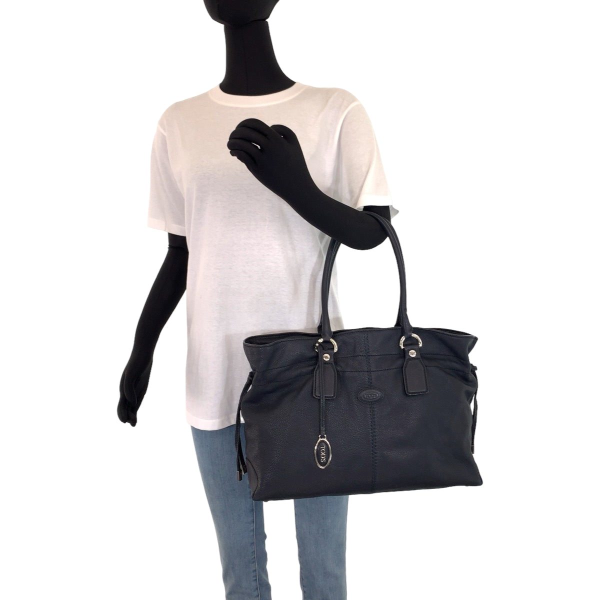 TOD’S トッズ ブラック 黒 シルバー金具 レザー トートバッグ ハンドバッグ レディース