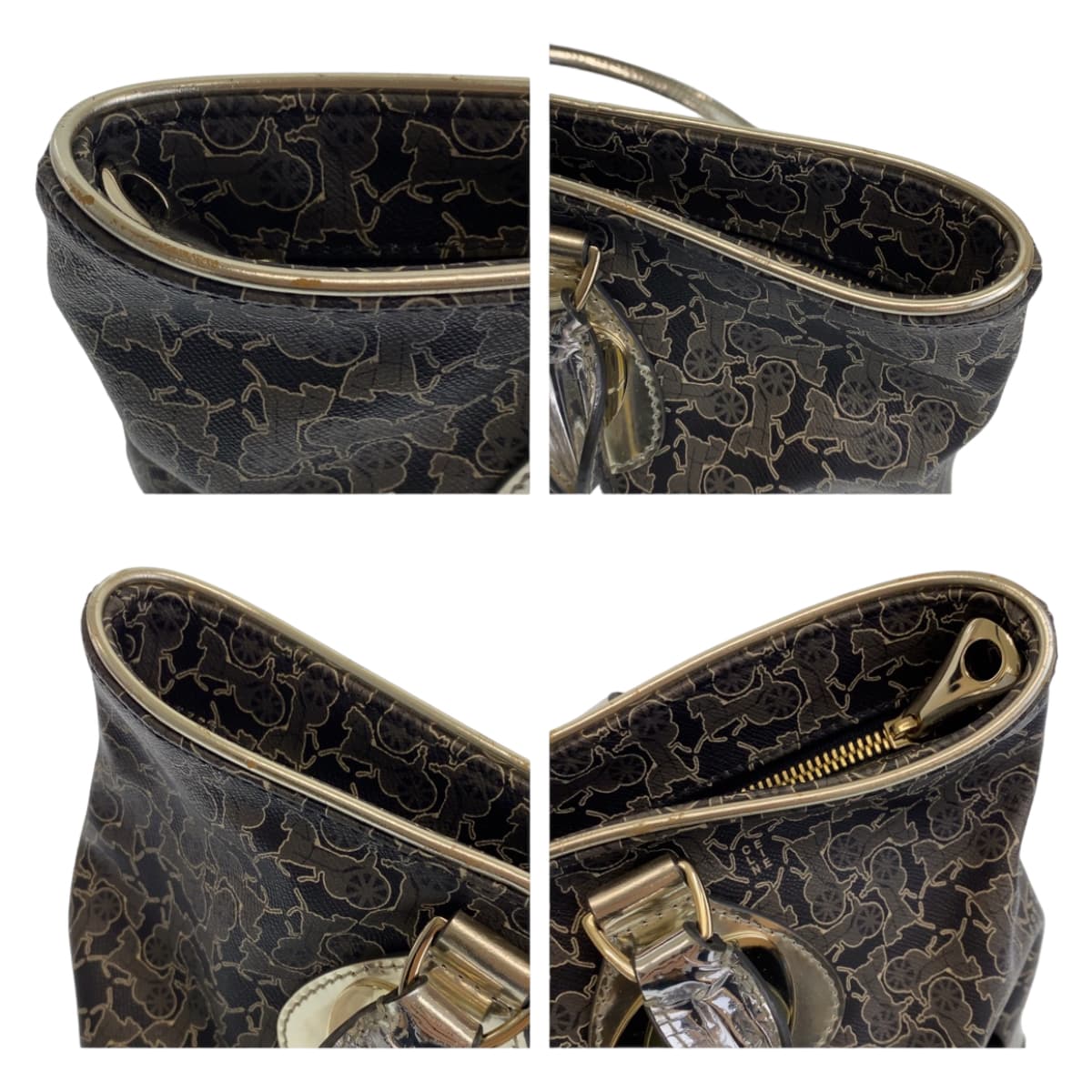 11147 CELINE セリーヌ ヴィンテージ サルキー 馬車柄 グレー マルチカラー シルバー金具 PVC トートバッグ ショルダーバッグ ハンドバッグ レディース ABP13