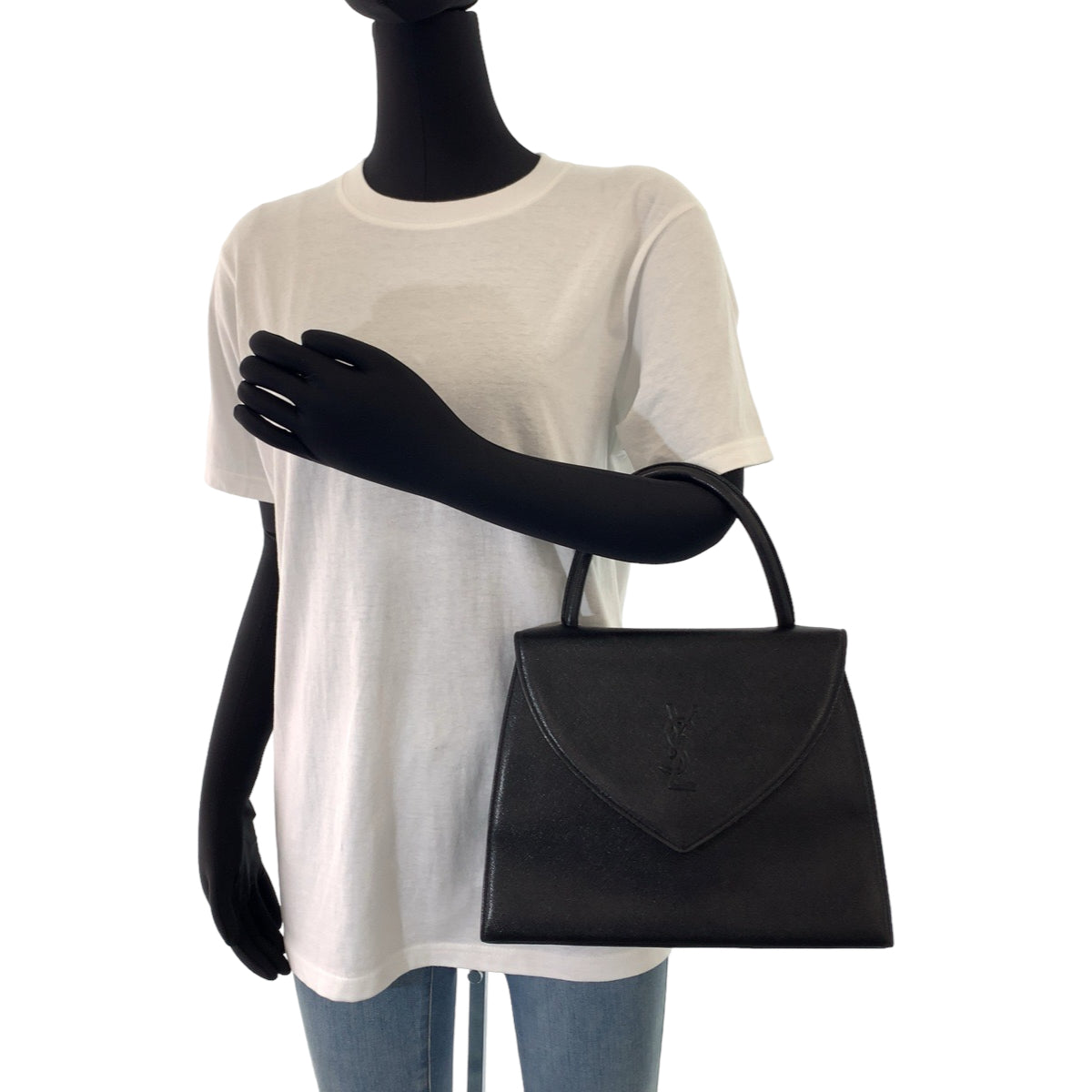YVES SAINT LAURENT イヴ・サンローラン クラシック YSLロゴ ブラック 黒 レザー ハンドバッグ レディース
