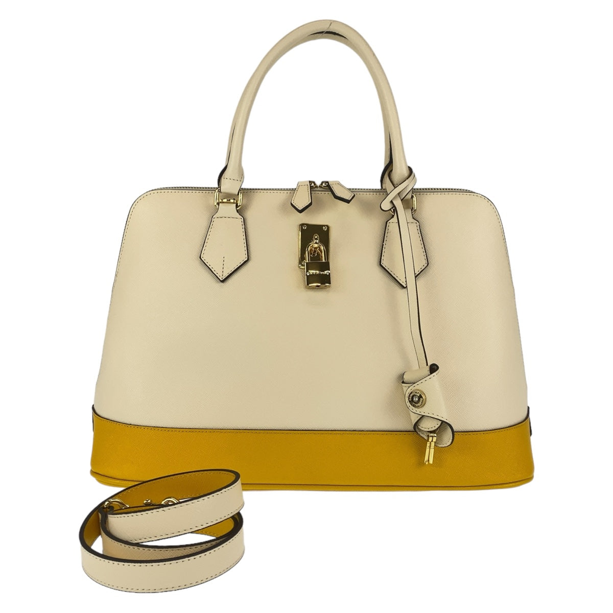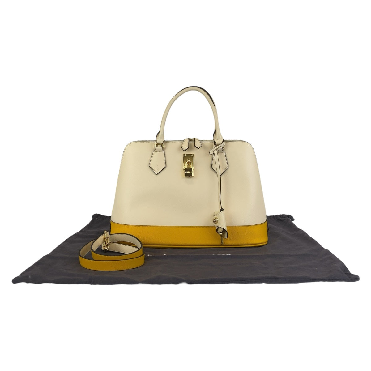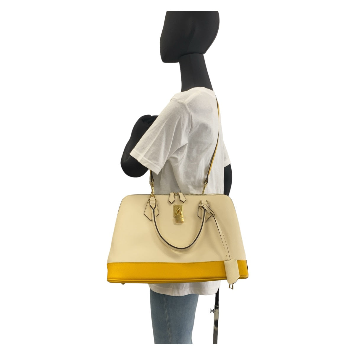 Samantha Thavasa サマンサタバサ ベージュ イエロー ゴールド金具 合成皮革 斜め掛け ショルダーバッグ ハンドバッグ 2way レディース