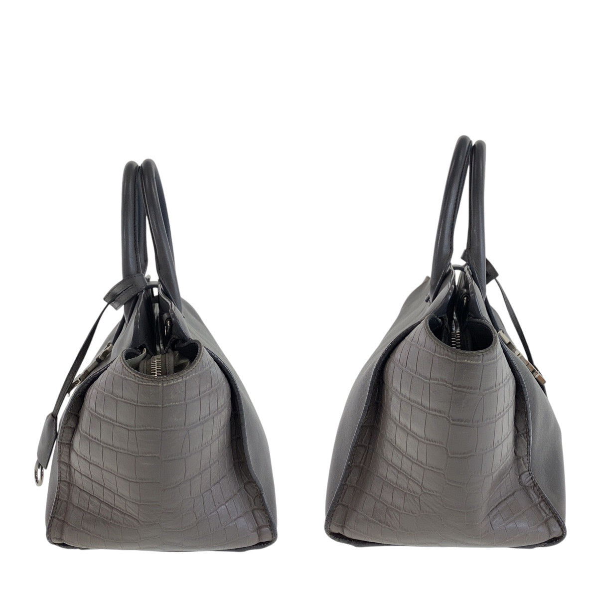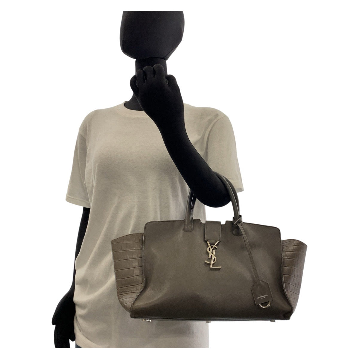 SAINT LAURENT サンローラン YSL ダウンタウン グレー シルバー金具 レザー トートバッグ ハンドバッグ レディース